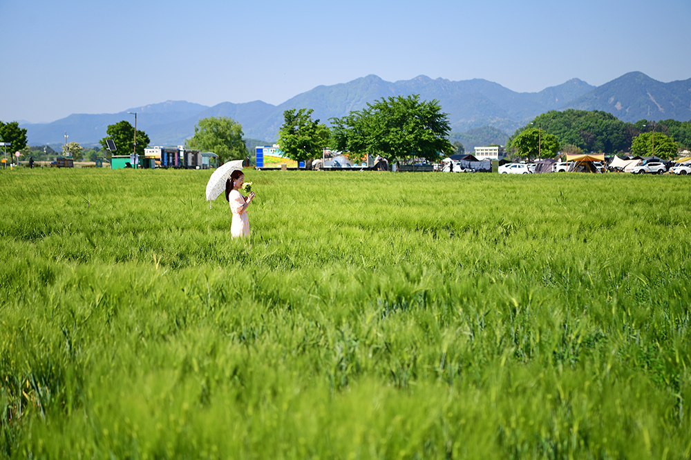 한적한 모습의 청보리 밭에서 전속모델의 모습을 담아봅니다.