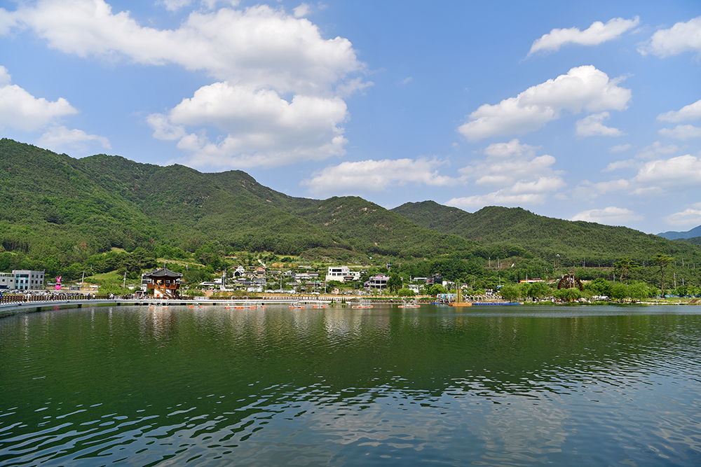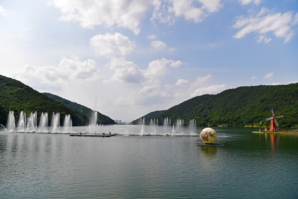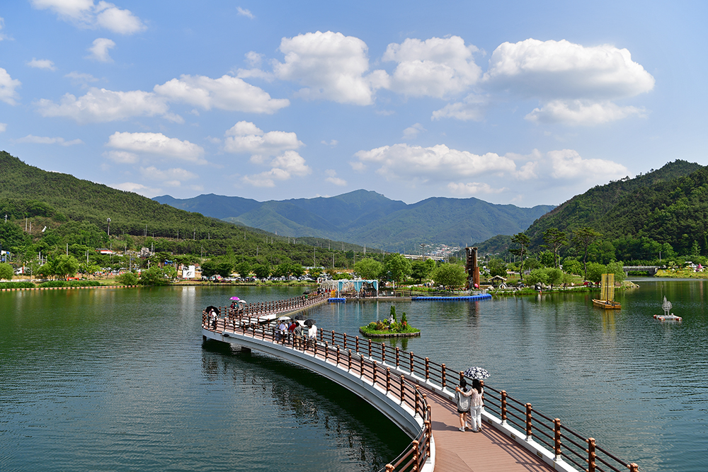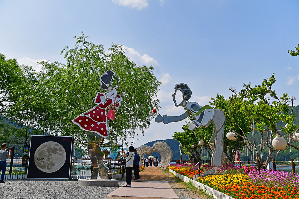 연인 모습을 한 구조물이 재밌습니다. 그곳을 지나 저수지 안으로 들어가면 하트모양의 조명 구조물 있습니다. 이곳에 불빛이 점등되면 참 예쁠 것 같네요~