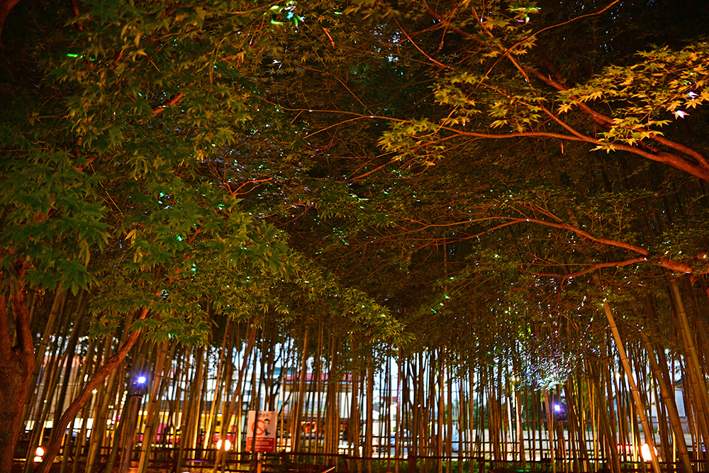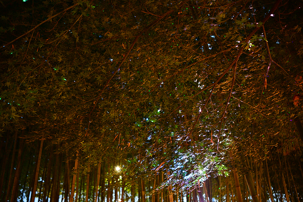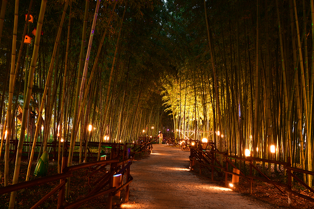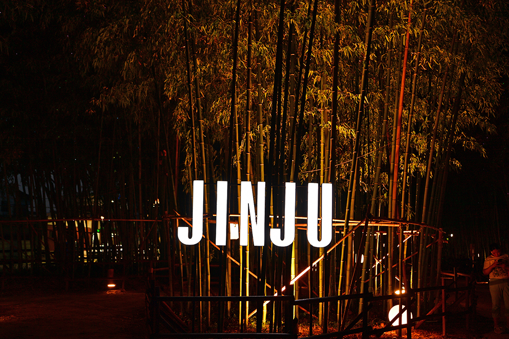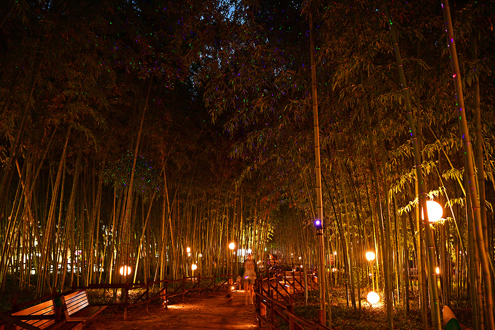 진주 중앙광장휴게소 일원에서 멋드러진 진주성 촉석루의 야경을 즐겼습니다. 귀가를 준비하려는데, 예쁜 조명이 반짝이는 대나무 숲이 보입니다. 그 모습에 호기심이 발동하여 휴게소 옆에 있는 대나무 숲을 둘러보기로 했습니다.