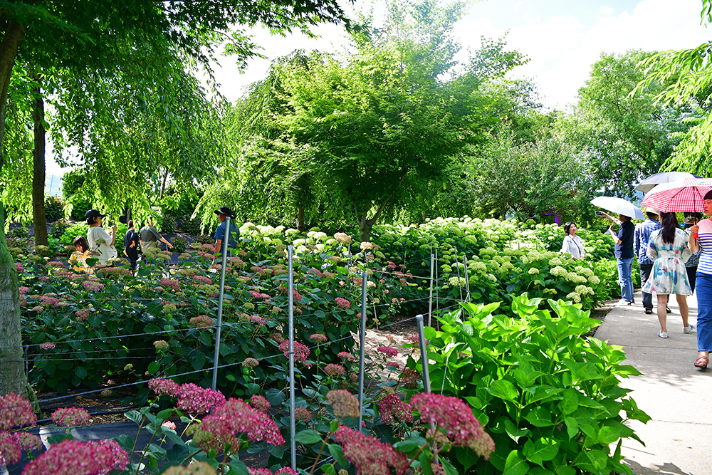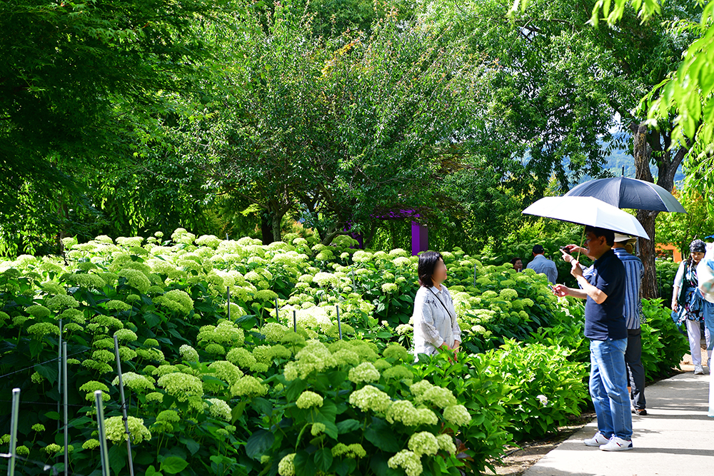 이제 유구색동수국정원을 즐겨 봅니다. 여기저기서 수국이 피어나고 있습니다. 아직 피어나지 않은 녀석들도 있습니다. 아마도 축제기간을 지나, 좀더 오랜기간 수국을 즐기려는 의도인것 같습니다. 그래서 찬찬히 정원을 거닐며 싱그럽게 피어나고 있는 수국들을 즐겨 봅니다.