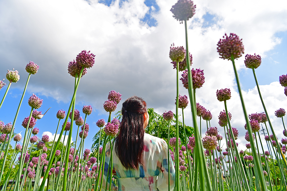 예쁜 코끼리마늘꽃 속으로 전속모델을 앞세워 봅니다. 그런데 마늘꽃이 웬만한 성인키와 비슷합니다. 어떻게 찍으면 좋을지 고민하다가... 로우앵글을 시도해봅니다. 그랬더니 코끼리마늘꽃의 키가 아주 커 보입니다. ㅎ