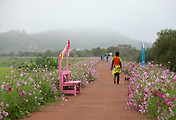 경화역 주변에 설치되어 있는 산책로를 걸어봅니다. 제법 길이가 있지만, 많은 분들이 나오셔서 산책을 즐기고 있었습니다. 특히 벚꽃나무와 코스모스와 어우러진 산책길은 시골의 여느 산책길 못지않게 아름다운 모습이랍니다.