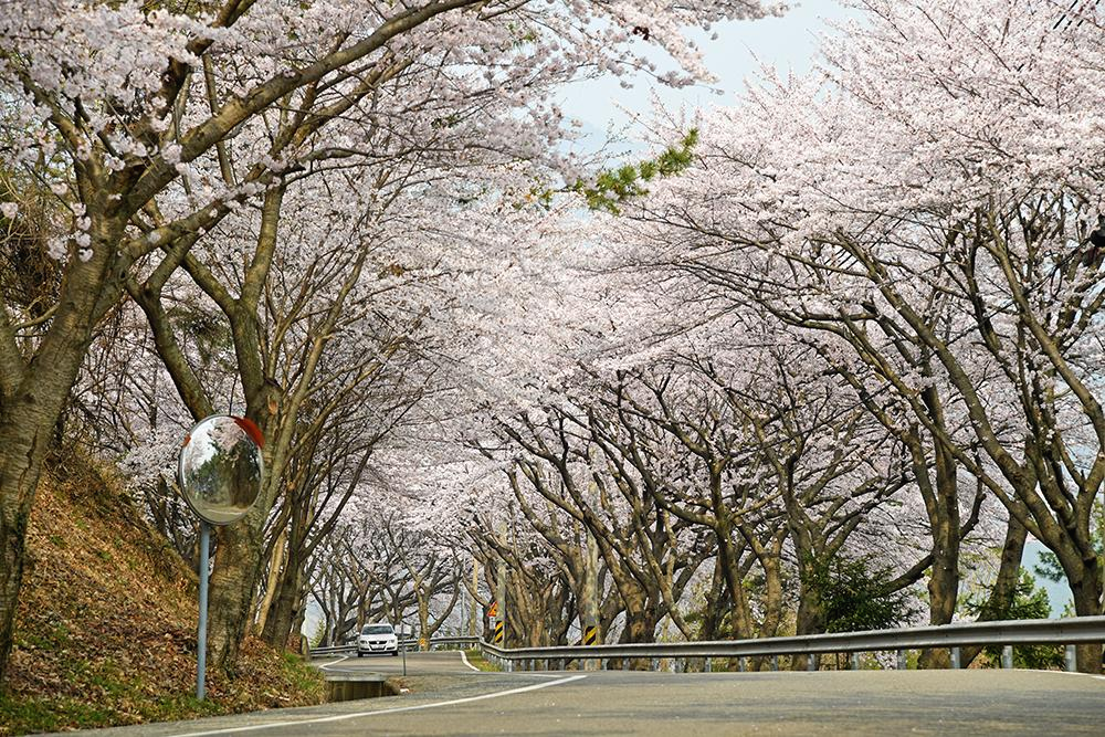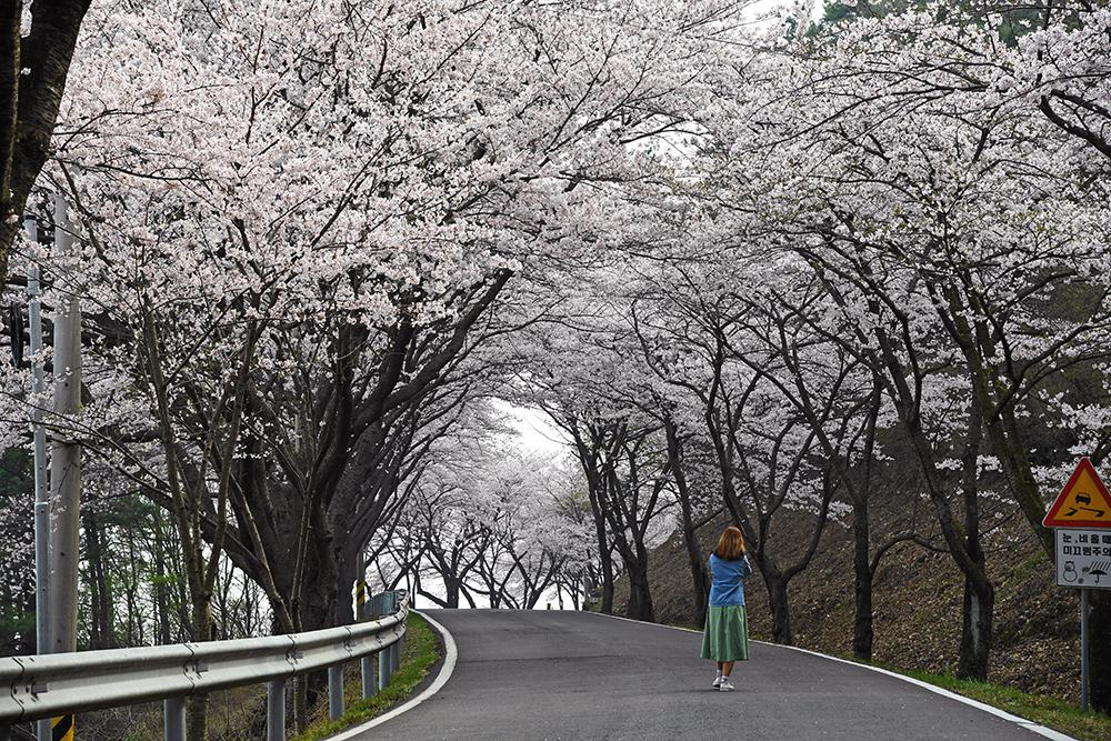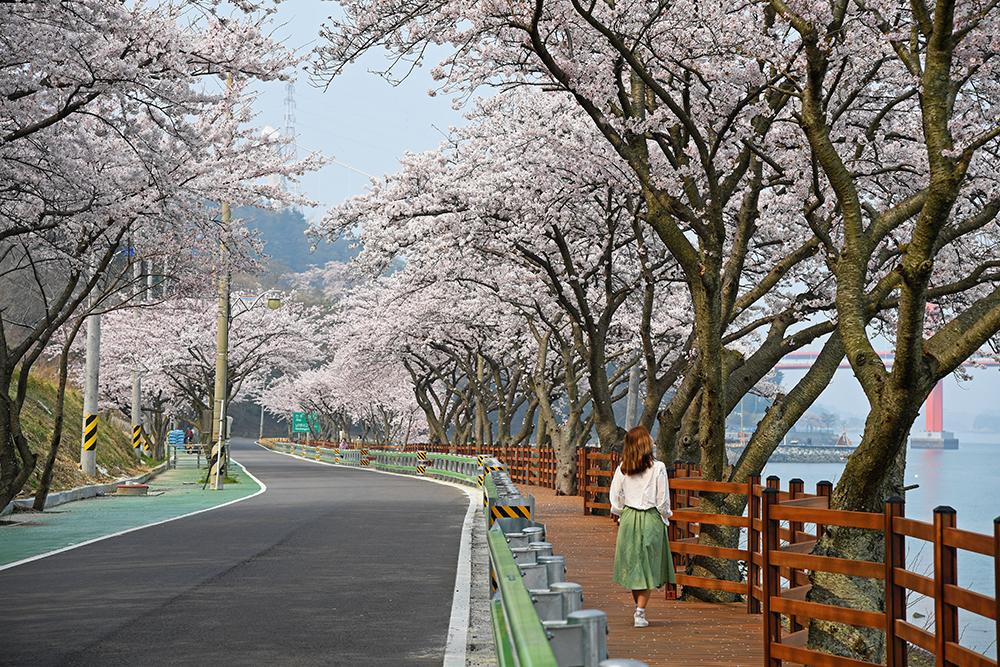 평소에는 노량 앞바다를 보며 한적하게 드라이브를 즐기지만, 봄철에는 도로 양쪽으로 길게 늘어서는 벚꽃 나무들이 하얀 벚꽃터널을 이루며 장관을 연출하는 곳이죠.