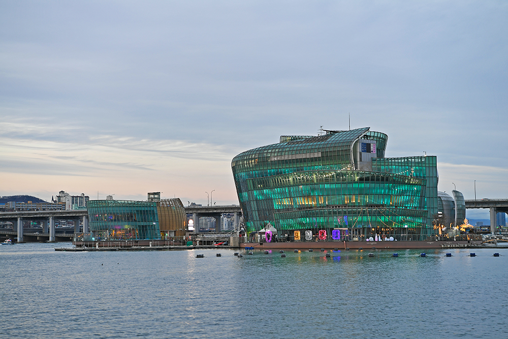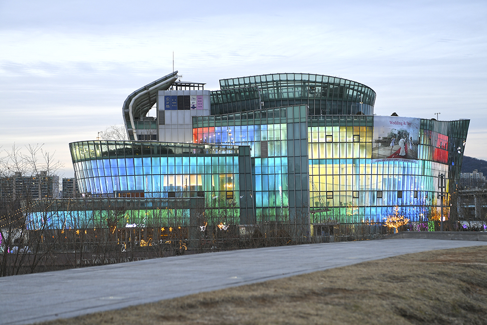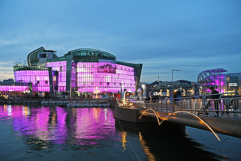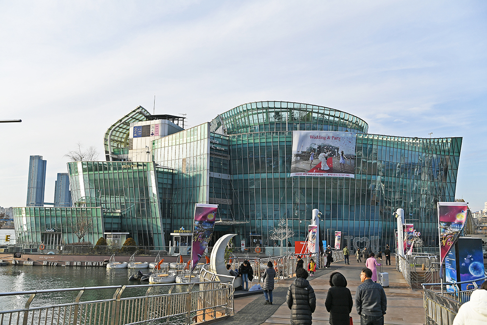 세 개의 인공섬이 있는 세빛섬으로 들어갔습니다. 입구에서 왼쪽으로 보이는 가장 큰 규모의 인공섬이 가빛섬(some gavit ) 입니다. 레스토랑을 비롯하여 웨딩과 연회를 할 수 있는 컨벤션 시설이 있는 곳인데요, 외관의 LED 장식으로 화려한 야경을 자랑하는 곳입니다.