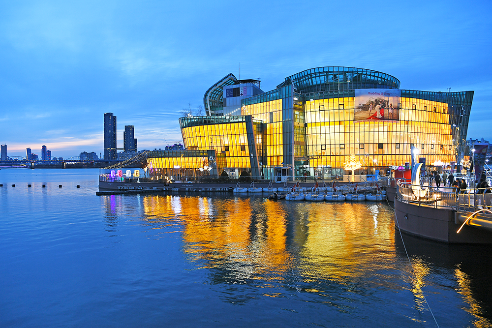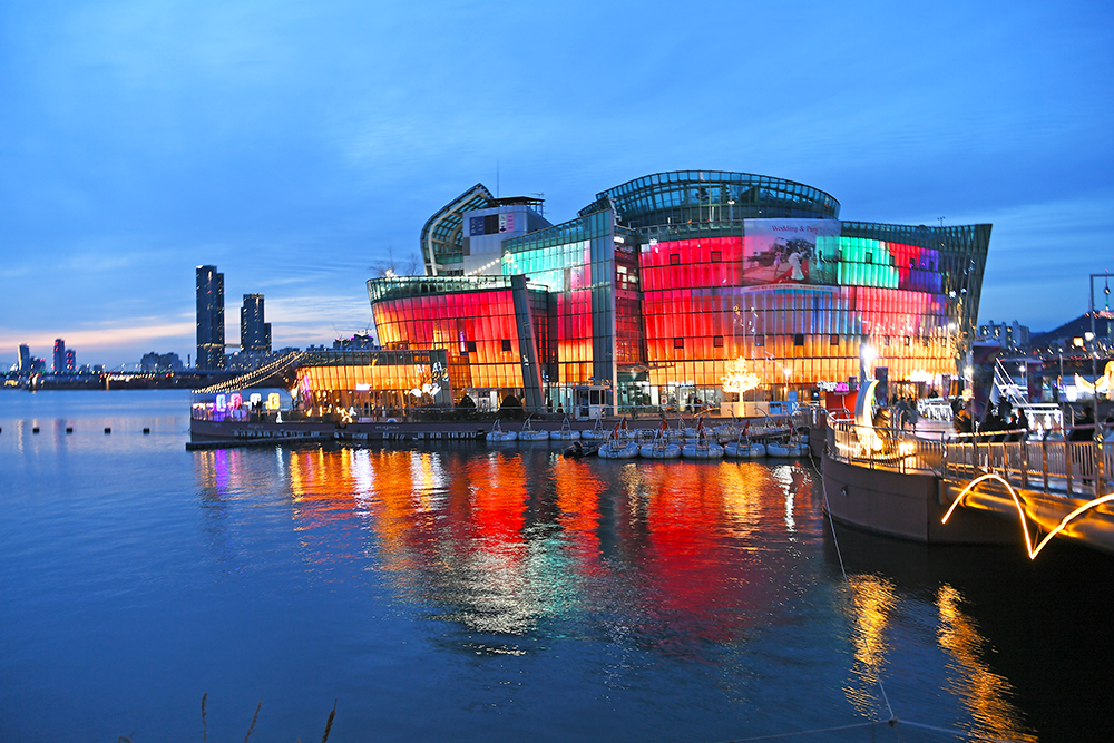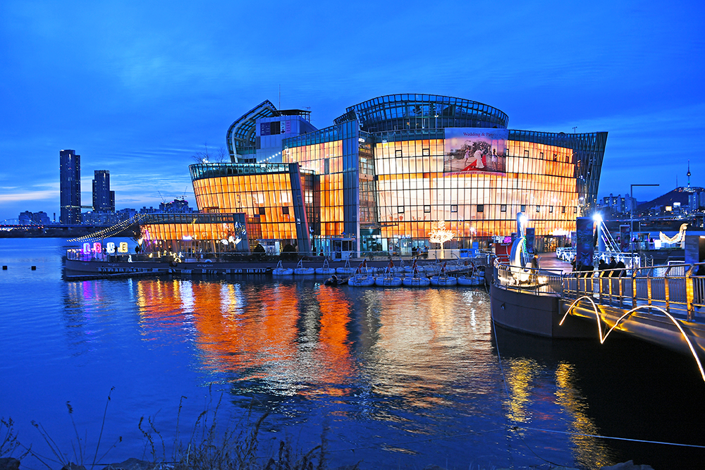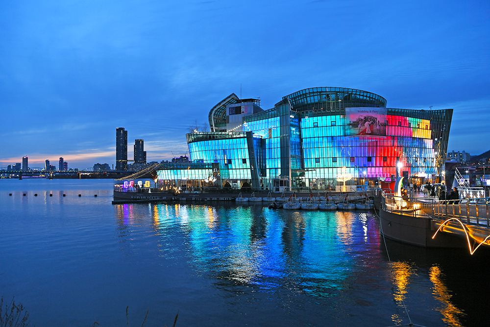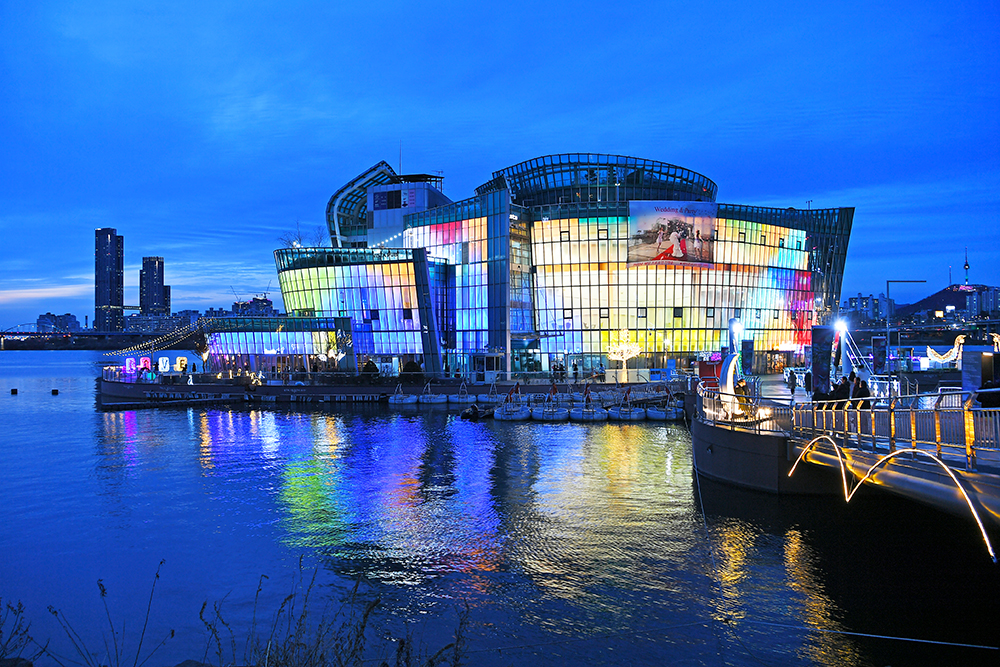 세빛섬은 한강공원에서 색다른 수변 문화를 즐길 수 있는 곳입니다. 가끔 영화나 방송에서 나올만큼, 강위에 떠 있는 플로팅 형태의 세빛섬은 한강의 새로운 랜드마크일 것 같은데요, 저녁노을 함께 어우러지는 모습도 정말 아름다울 것 같습니다.