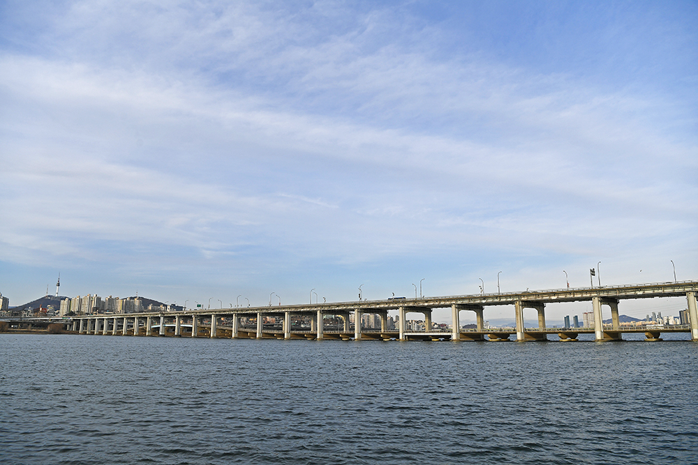 세빛섬 일대에서 한강의 멋진 모습을 조망할 수 있습니다. 특히 반포대교와 남산타워가 어우러진는 모습이 꽤 인상적입니다.