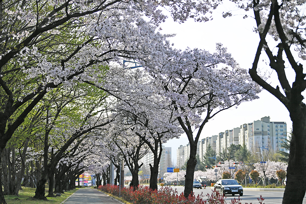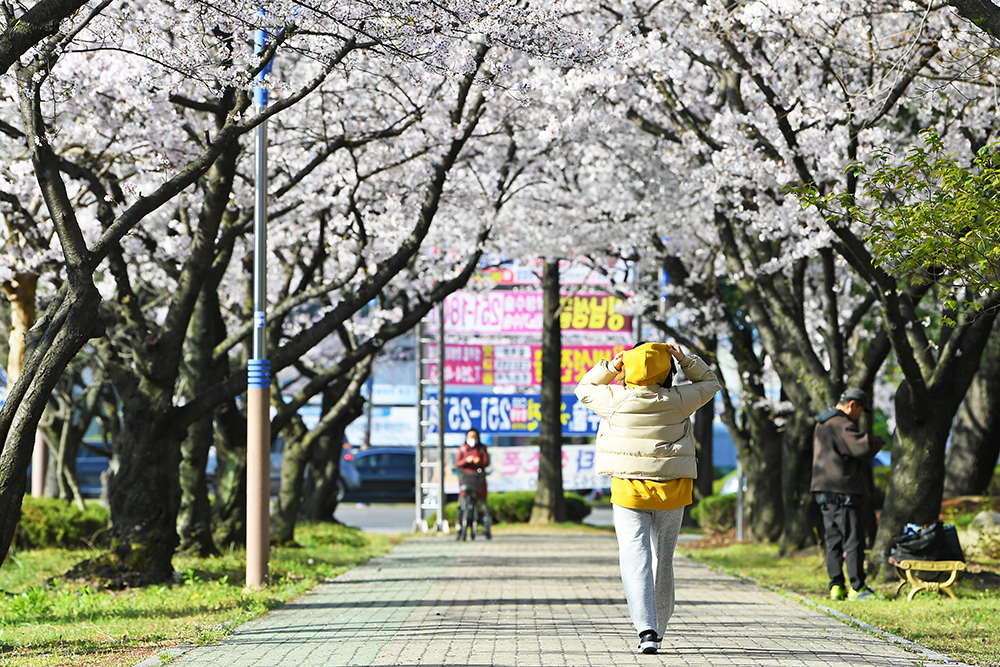 ▼ 창원대로변 인도을 뒤덮은 벚꽃