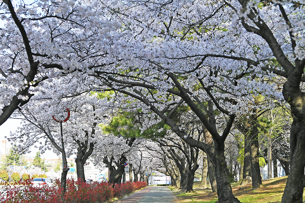 민방위 교육장을 모르는 분들이 많습니다. 창원병원 맞은 편 공원 지하에 위치하고 있기 때문입니다. 하지만 도로변 넓은 인도를 뒤덮는 벚꽃들이 아주 아름다운 곳이랍니다^^