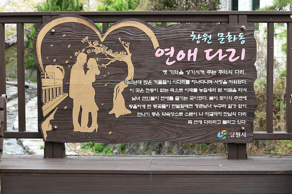 일제강점기때 부터 창원천 변은 벚나무 동네( 일명 사쿠라마찌 )로 불릴 만큼 벚꽃이 아름다운 곳이었습니다. 그러다 1980년대에 들어, 많은 연인들에게 연애를 즐기기 위한 만남의 장소로 소문나면서 ‘연애 다리’로 불렸다고 하는군요.