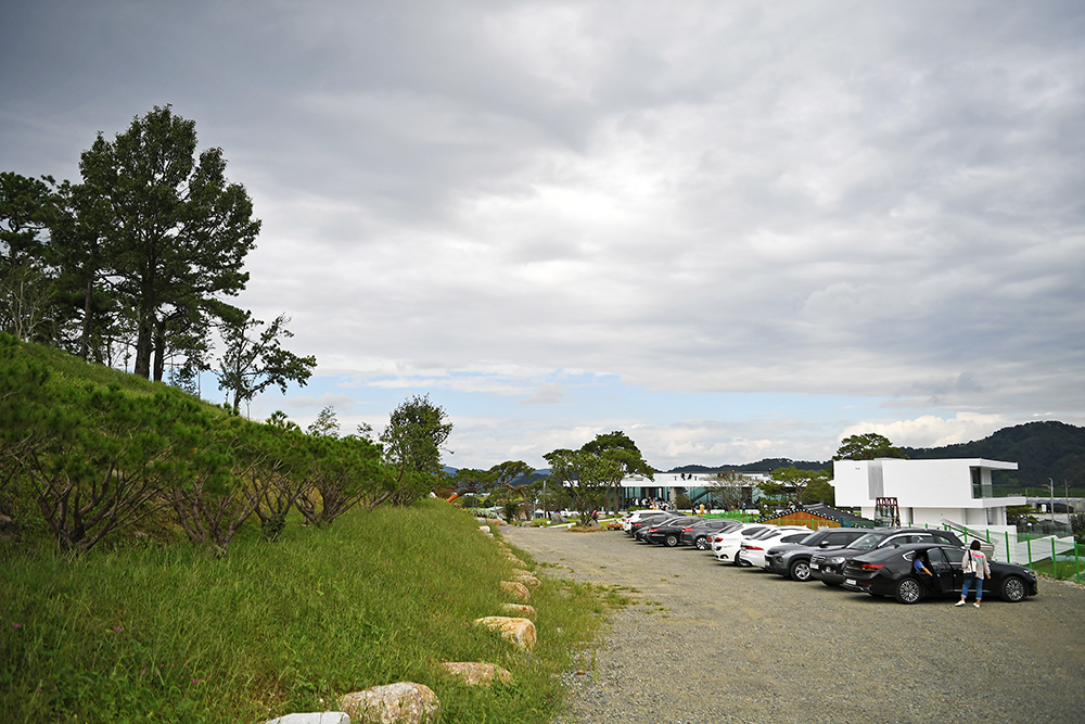 뜬 카페의 주차장도 제법 큰 편입니다. 오후 시간임에도 벌써 만차인듯 하여, 저는 카페 윗쪽에 있는 임시 주차장에 주차를 했습니다.