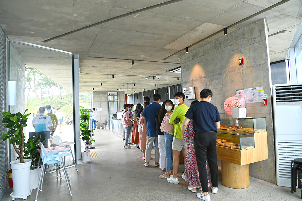 먼저 카페 로 들어 갔습니다. 실내에는 많은 분들이 계셨습니다. 다들 마스크를 착용하며 코로나 예방 수칙을 잘 지키는 모습입니다. 저도 줄을 서서 기다리며 음료와 베이커리를 주문했습니다...ㅎㅎ