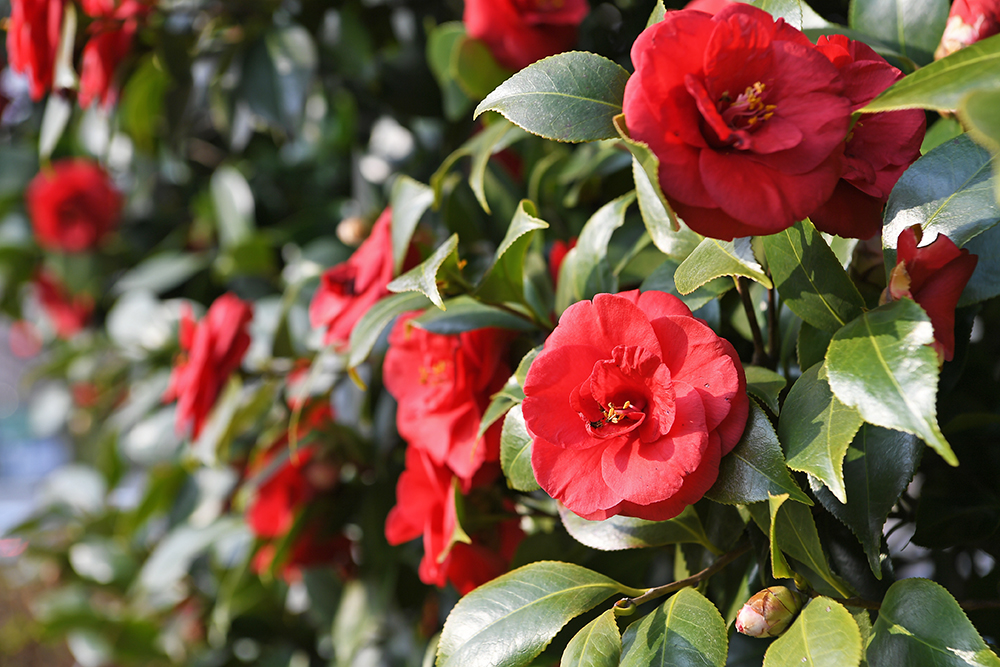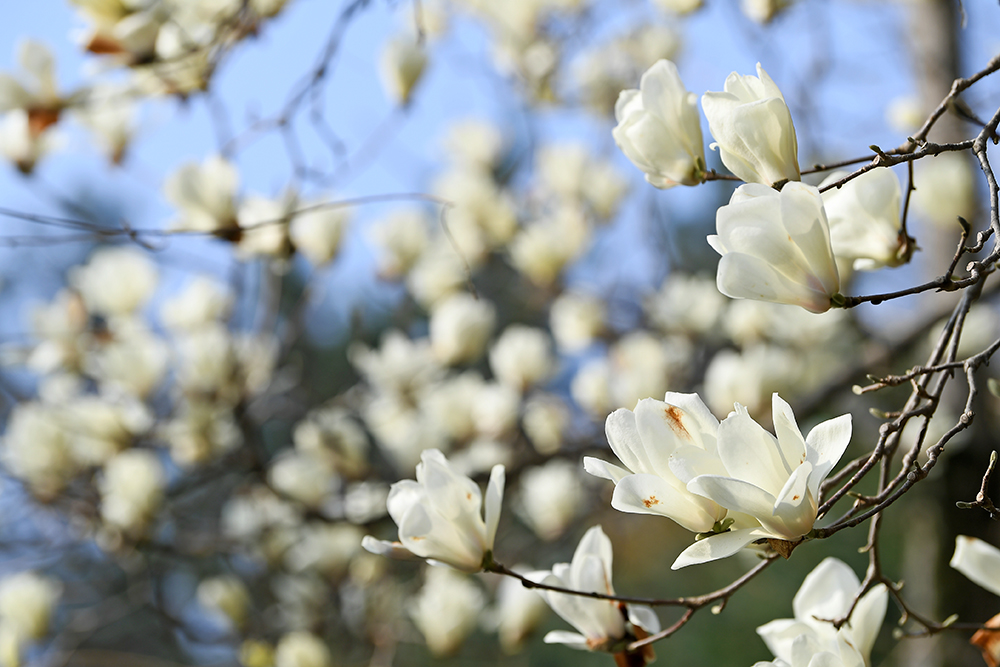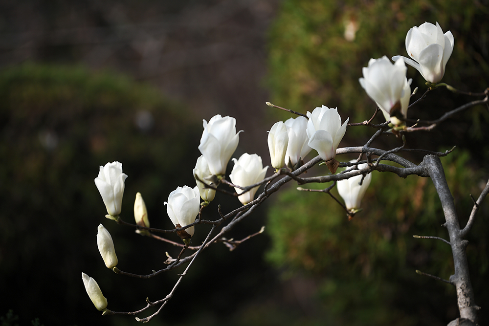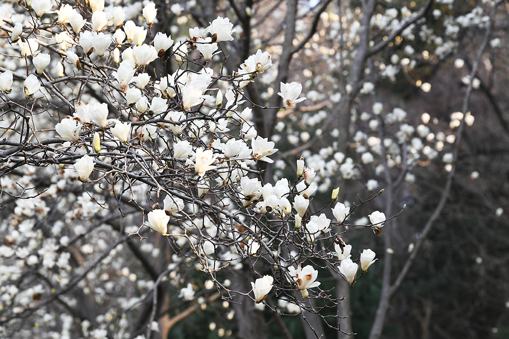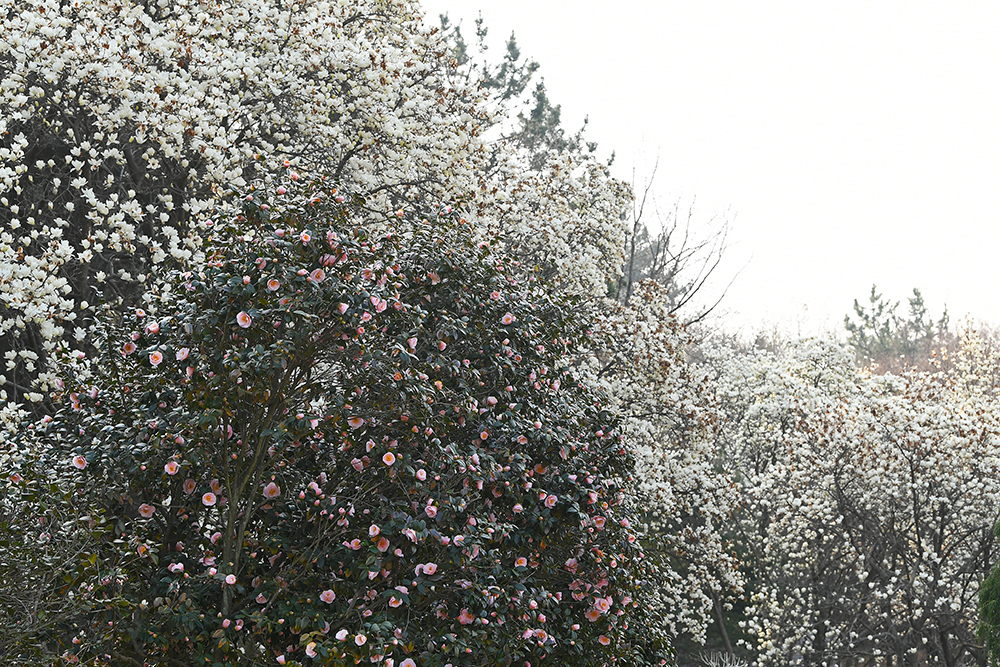 창원 충혼탑은 도심 한 가운데 있습니다. 그래서 자주 지나치게 됩니다. 어느날 보니 '목련꽃'이 허드러지게 피었습니다. 한 그루도 아니고 여러 그루입니다. 마치 군락지를 이루고 있는 듯 합니다. 입구의 큰 동백나무에도 동백꽃이 만발합니다.