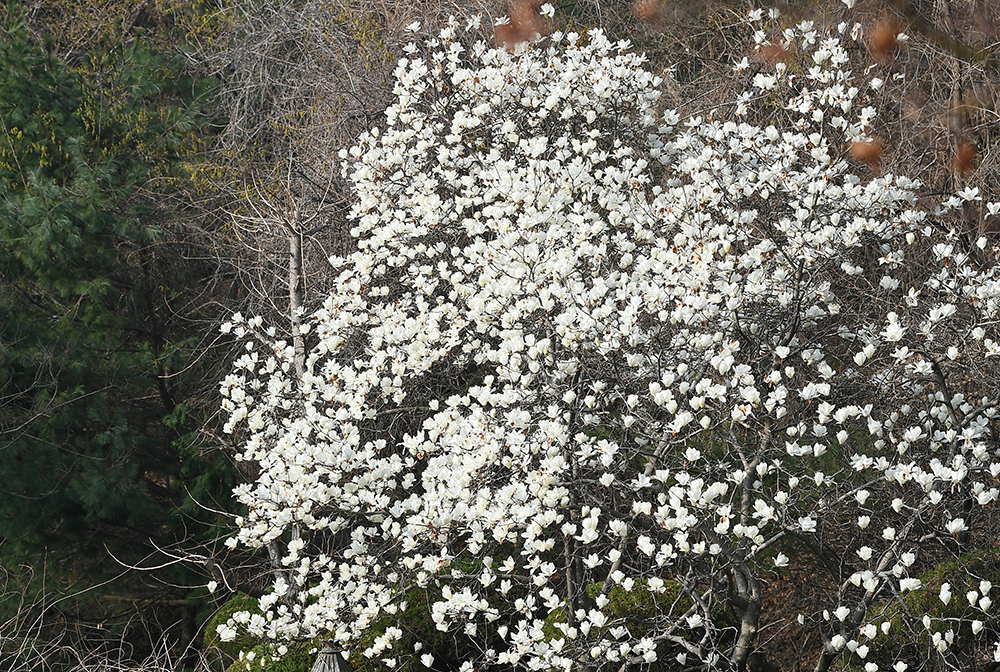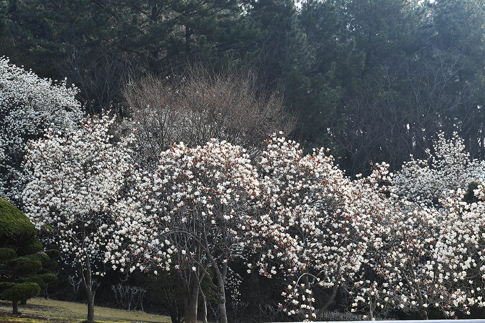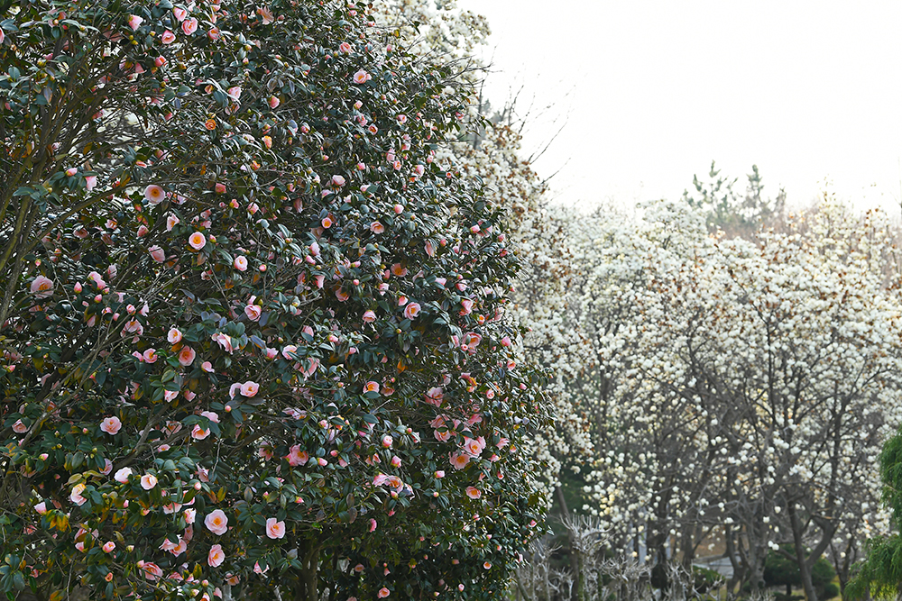 '충혼탑의 목련꽃과 동백꽃이 이렇게 예뻤나?'