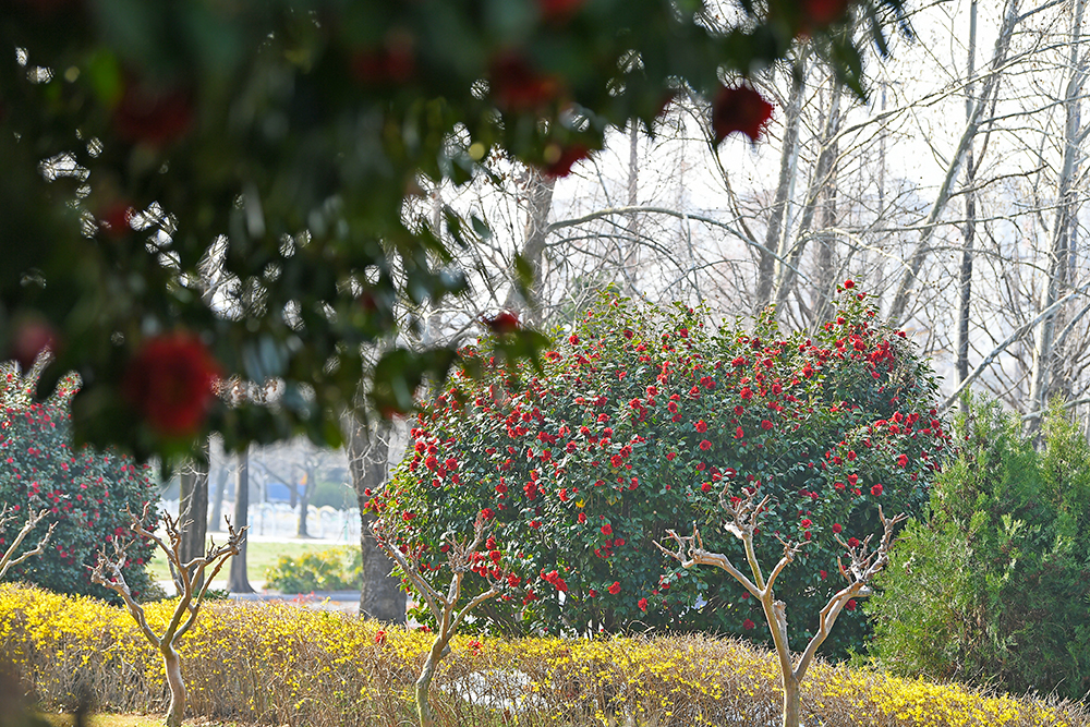 ▼ 동백꽃과 개나리의 콜라보~~^^