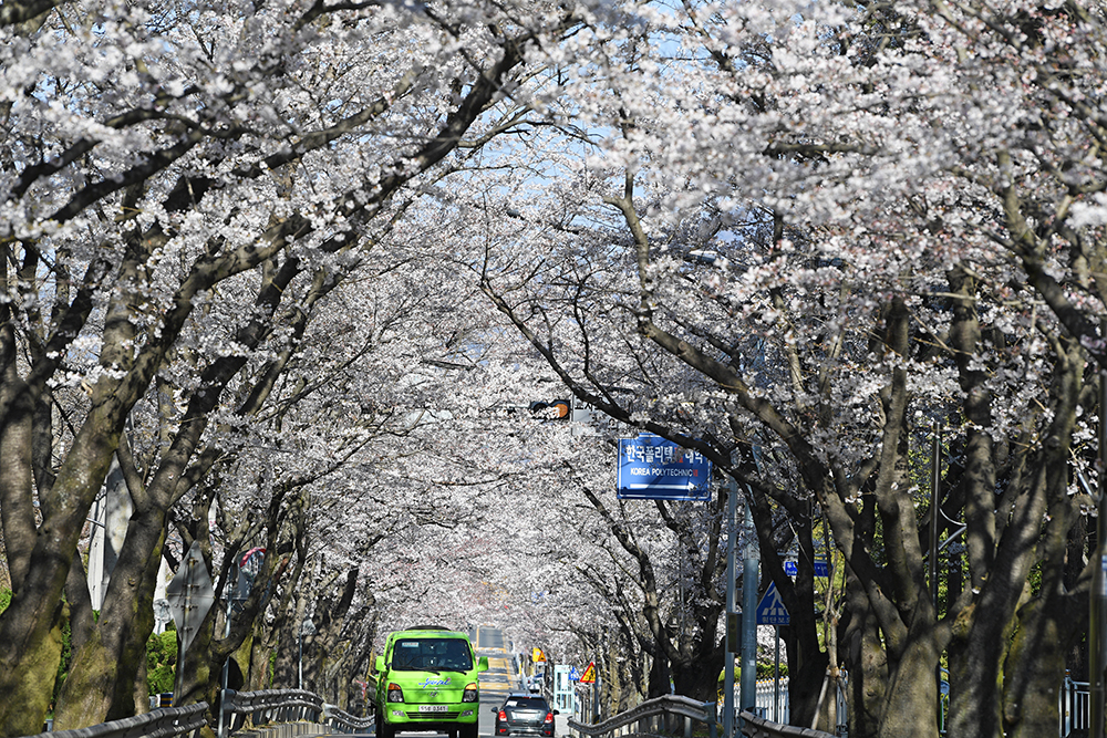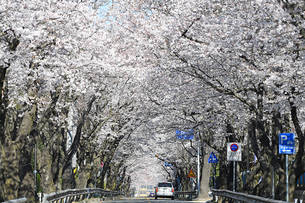 이 곳의 벚꽃 개화율은 대략 70% 정도입니다. 이번 주말이 지나면 만개할 듯 합니다. 이차선 도로 위에 벚꽃이 터널을 이루는 창원교육단지 일대는 30km 이내로 서행할 수 밖에 없는 곳입니다. 때문에 드라이브 하기 좋은 곳이라 할 수 있는데요, 교육단지 벚꽃은 드라이브 스루로 즐겨보시기 바랍니다. ㅎㅎㅎ