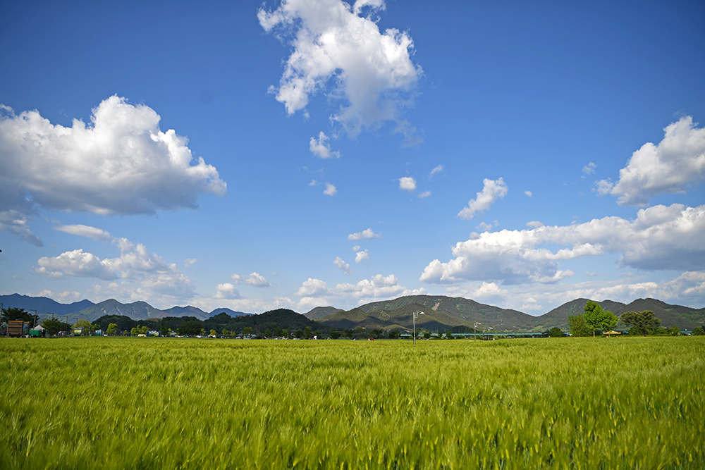 한들한들 불어오는 강바람에 살포시 흔들리는 청보리밭!! 그 위로 펼쳐지는 파라 하늘엔 두둥실 흰 구름이 떠다니고, 보리밭 위로 쏟아지는 햇볕은 더없이 포근한 곳이 있습니다.