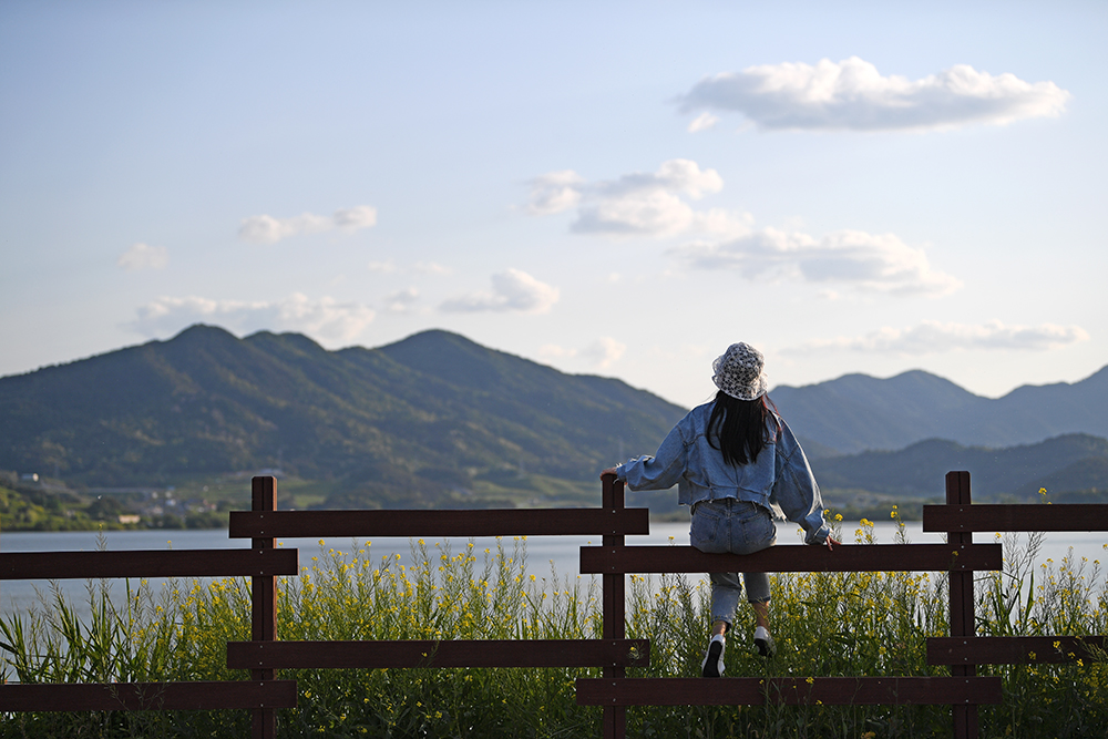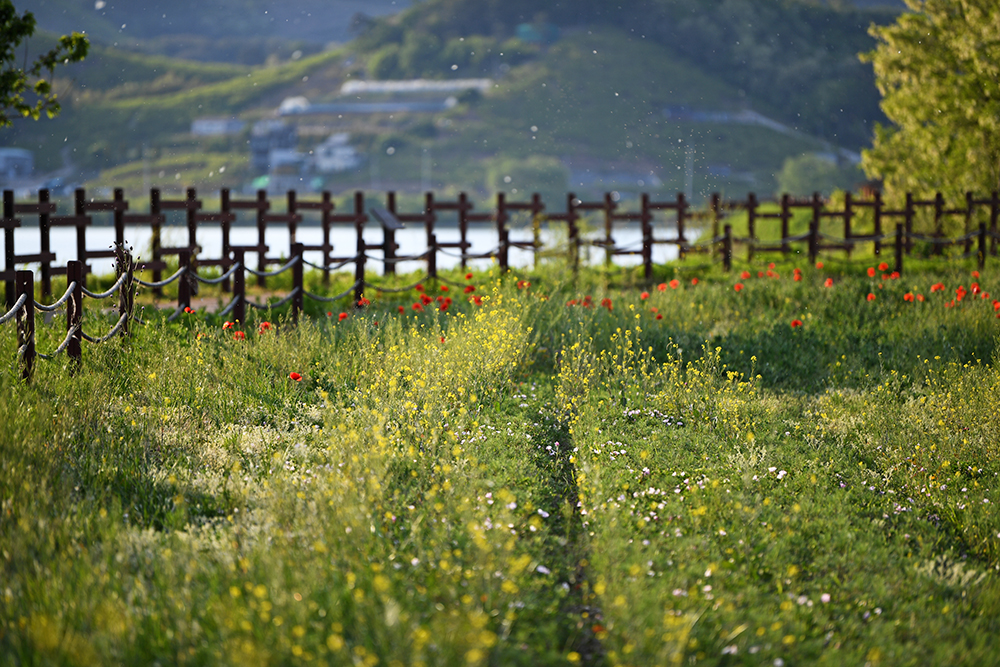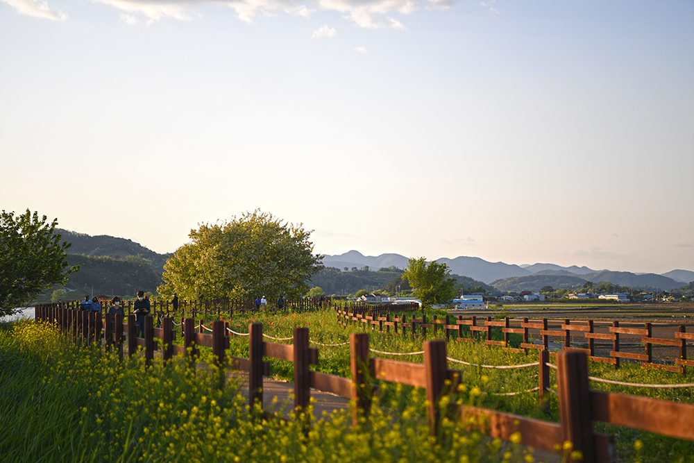 일몰까지는 아직 여유가 있어, 사부작이 산책로를 걸어봅니다. 벚꽃 질 무렵에는 노란 유채꽃으로 장관을 이루는 곳이지만 지금은 대부분 졌습니다. 하지만 남아있는 지금의 모습으로도 충분히 아름다운 길이네요~~^^