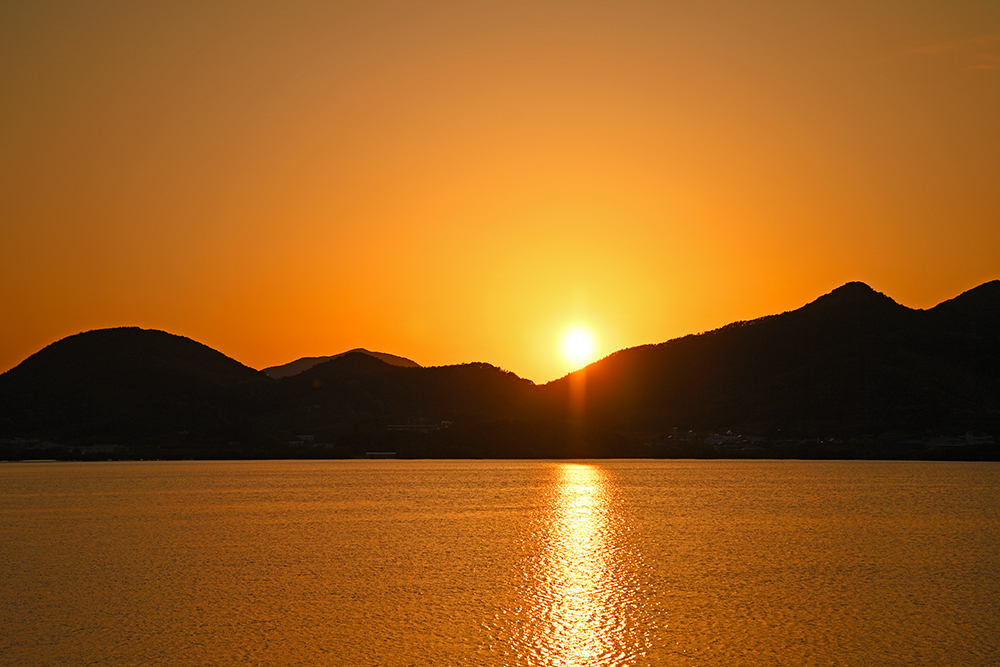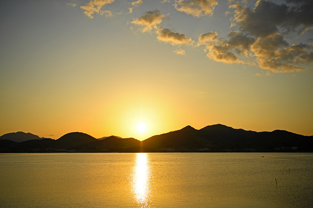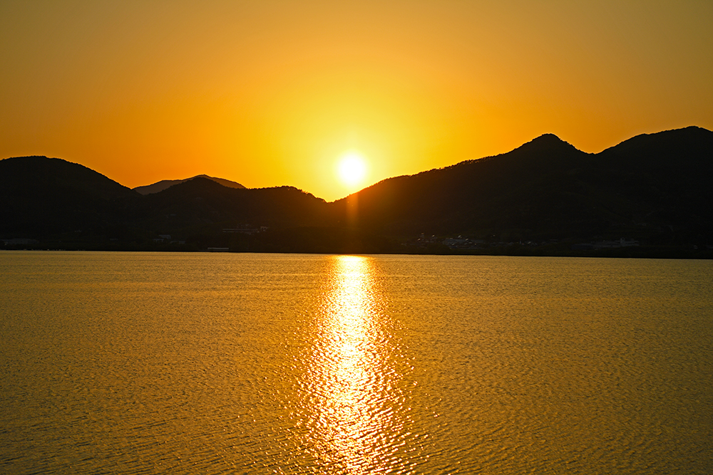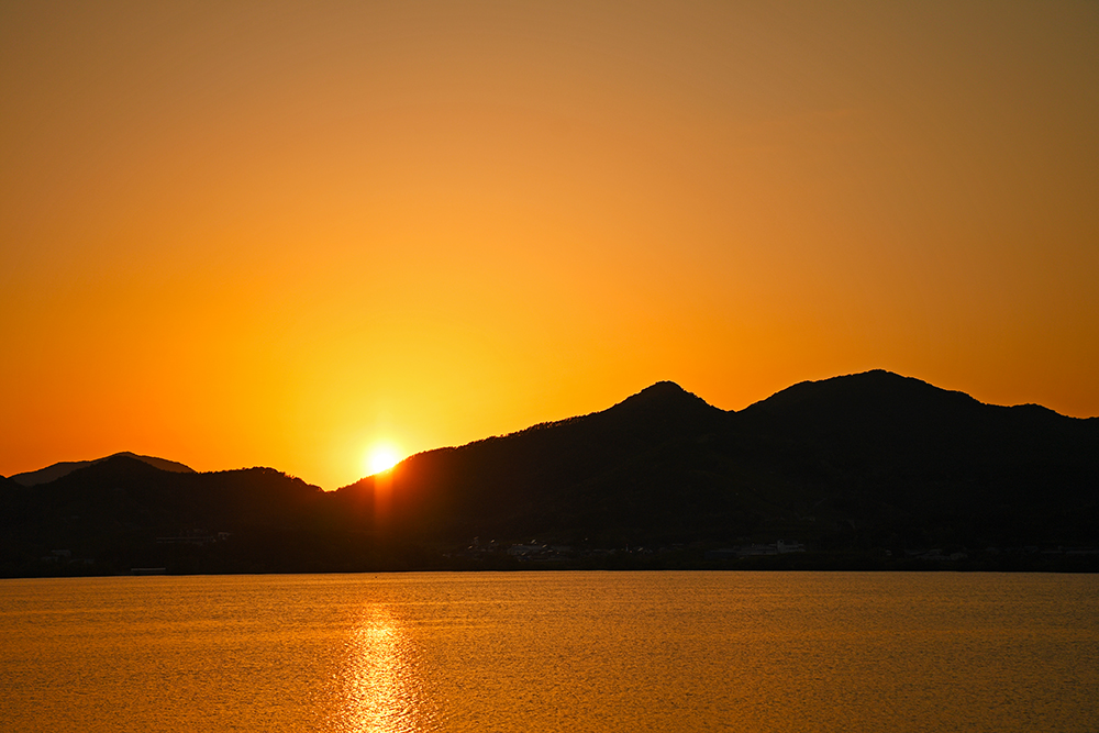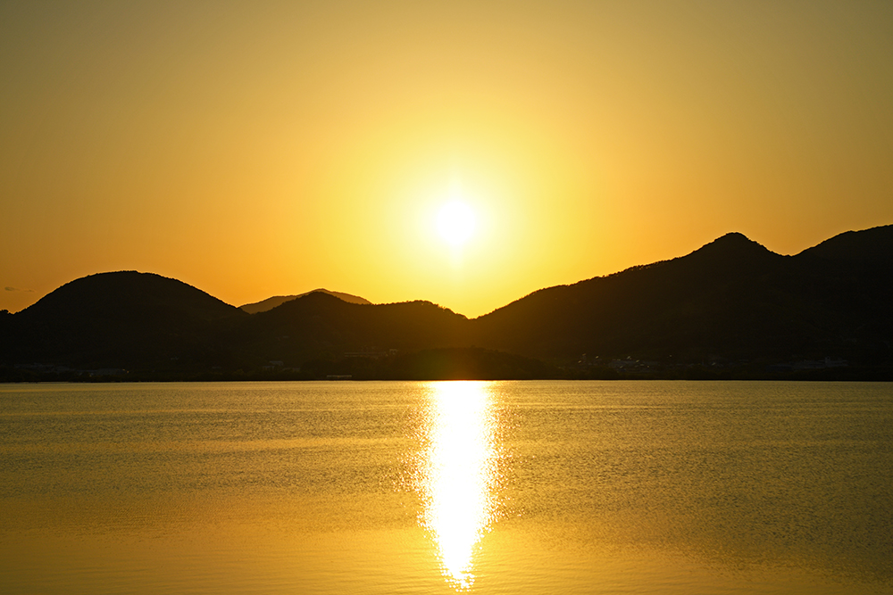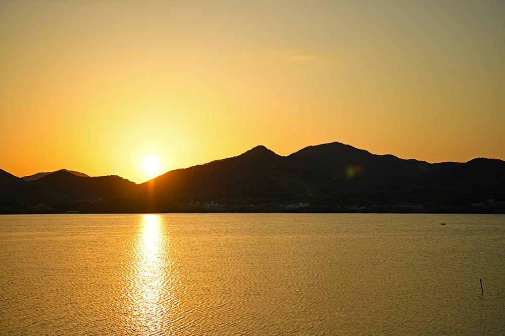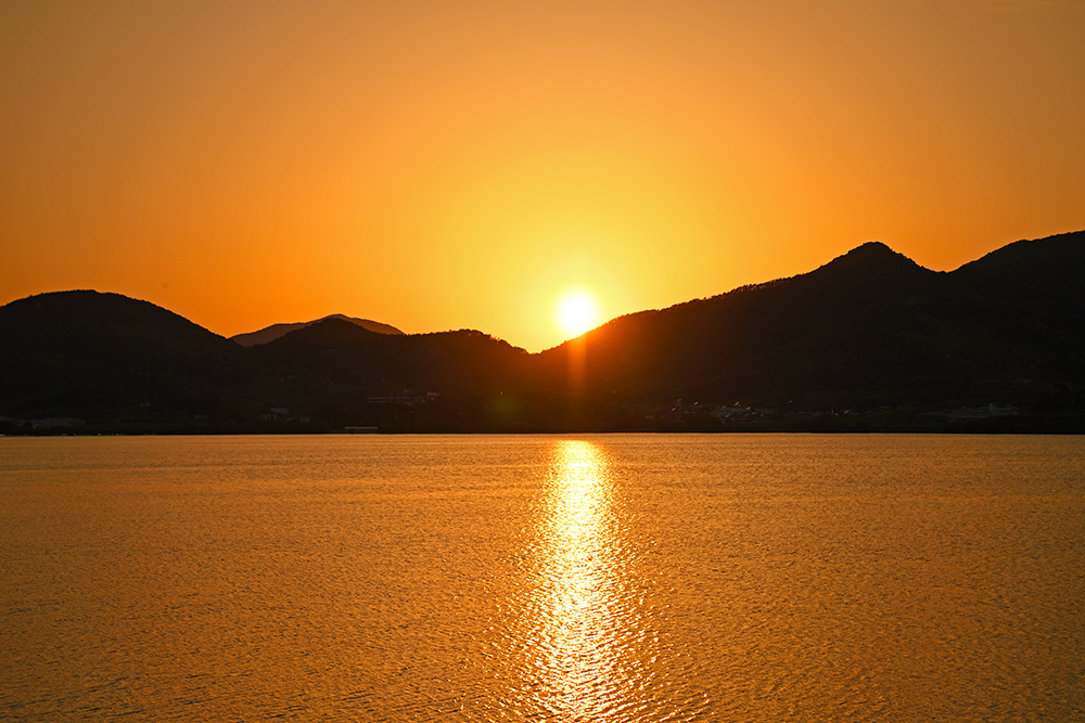 다시 쉼터 앞으로 돌아와서 저수지를 살펴보니 곧 일몰이 시작될 것 같습니다. 그런데 태양은 가장 높은 산봉우리로 넘어갈 듯합니다. 불현듯 지난해 유채꽃 배경으로 일몰을 담으려다 실패했던 기억이 떠오릅니다.