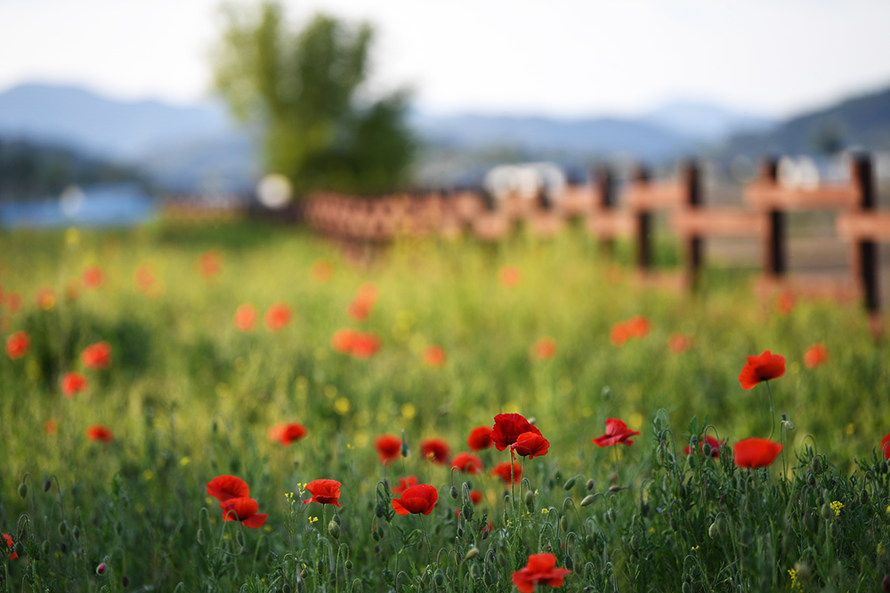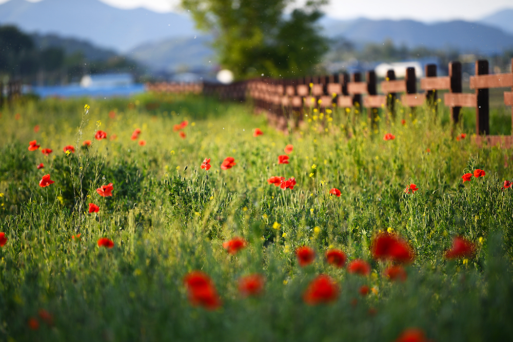 유채꽃이 있던 곳에 빨간 꽃이 군데군데 피어있습니다. 자세히 보니 붉은 양귀비꽃입니다. 예전에 양귀비꽃을 심었던 적이 있었는데, 여태껏 삶아 남은 녀석들이 아름다운 꽃을 피워낸 것입니다. 한마디로 끈질긴 생명력이라고나 할까요? ㅎㅎ