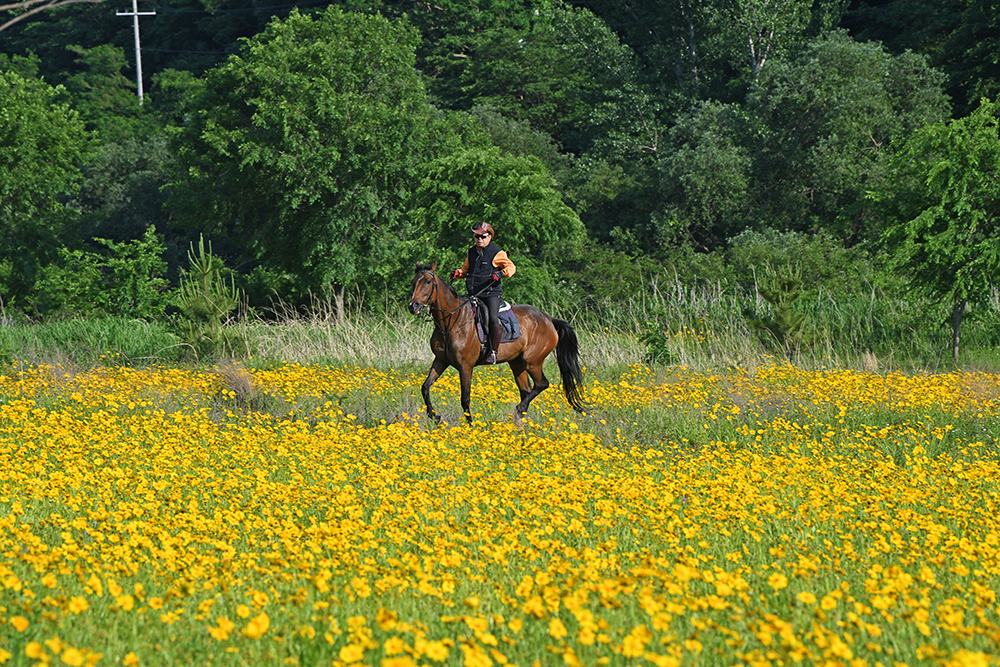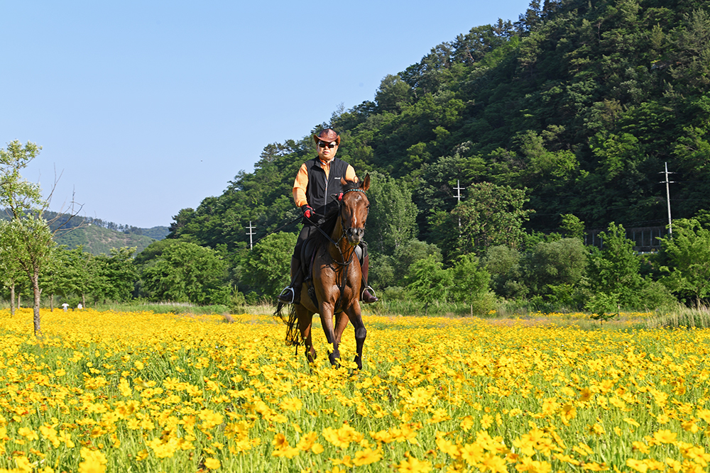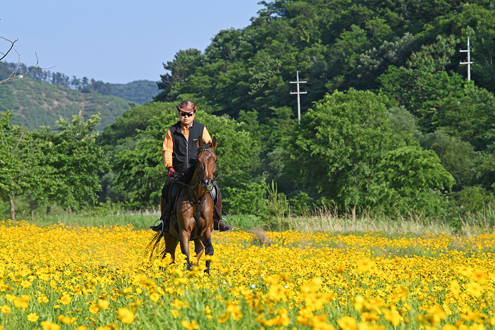 금계국을 즐기고 있는데 어디선가 한 마리 말이 나타납니다. 작년에도 본 말인데 신기하고 반가웠습니다.