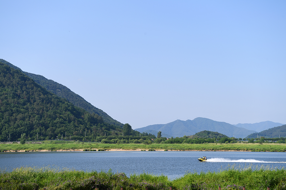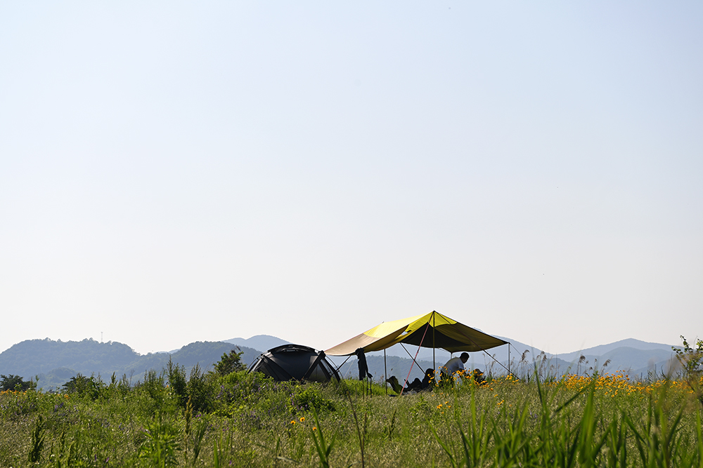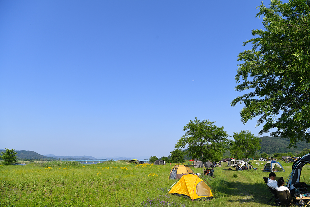 이곳은 명촌 마을 앞과는 사뭇 다른 분위기입니다. 많은 텐트가 설치되어 있습니다. 캠핑장은 아니지만 시원한 강바람을 즐기려고 나들이 오신 분들입니다. 텐트 옆에서 조용히 강바람을 즐기는 모습이 참 좋아 보입니다~^^