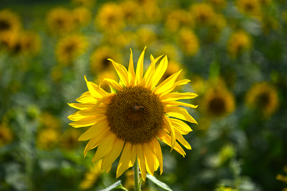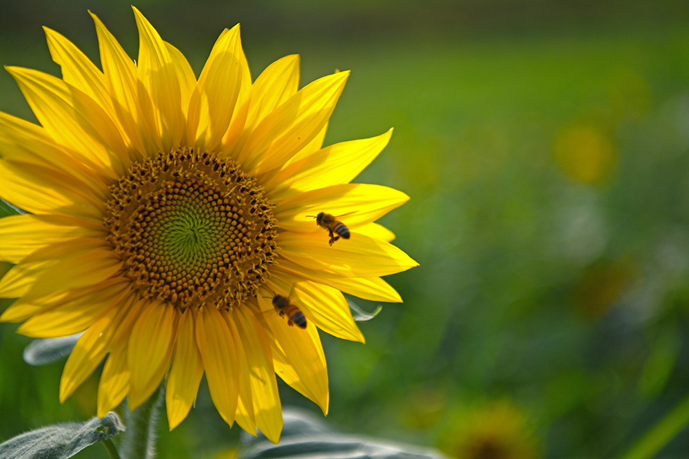 대산야구장 펜스 옆에 있는 군락지에서는 해바리기 꽃 위주로 즐겼습니다. 때마침 찾아온 벌 한마리가 찬조 출연을 맡아 줍니다. ㅎㅎ