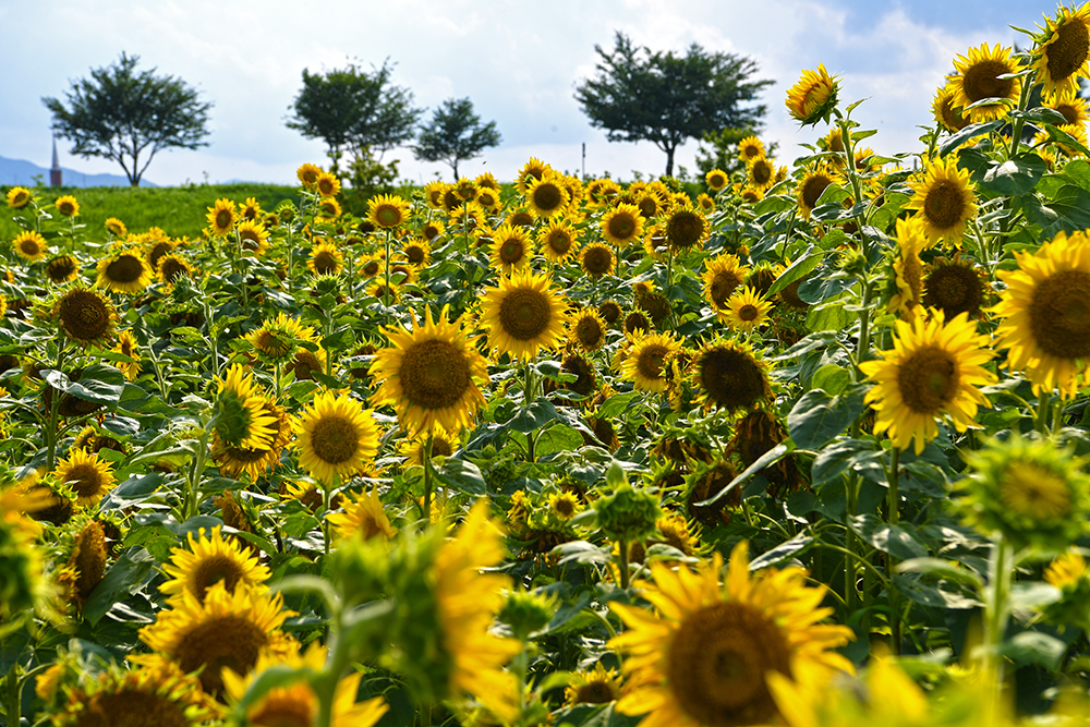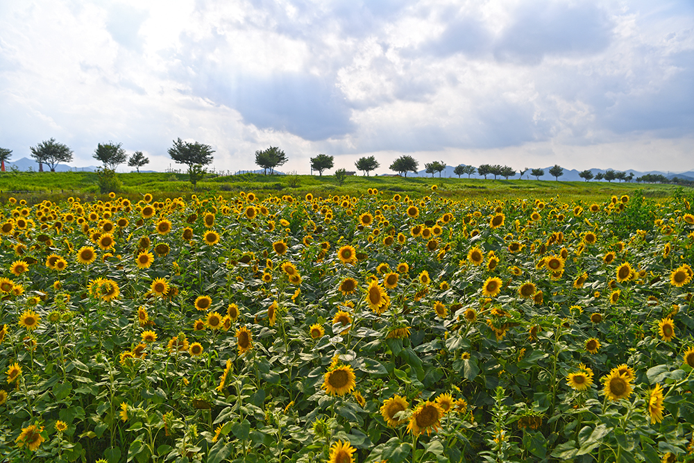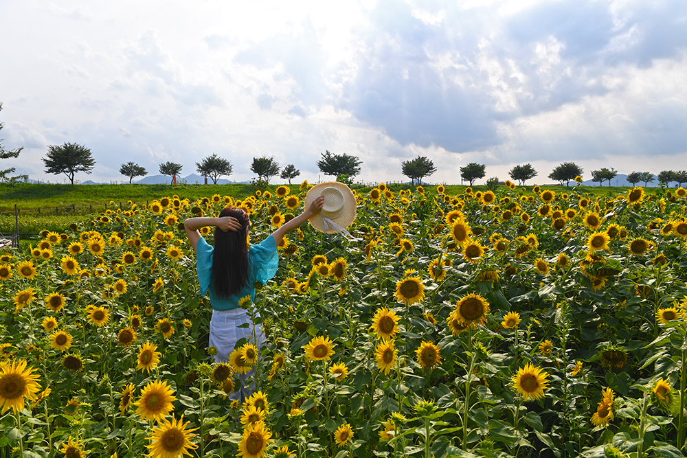 무더위를 기다리는 꽃이 있습니다. 태양을 닮은 해바라기입니다. 그 기다림의 시간을 지나오면서 낙동강변에 위치한 창원 ‘대산플라워랜드’에서 반가운 해바라기 개화 소식이 들려옵니다.