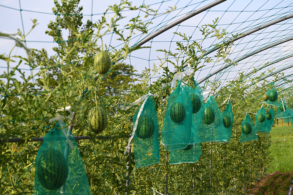 해바라기를 즐기기 위해 군데군데 남아있는 장미꽃과 수국들은 패스했습니다. 그런데 하우스처럼 생긴 곳을 지나는데 특이한 것이 있습니다. 조롱박이겠거니 하고 봤더니 글쎄 수박입니다. 넝쿨째로 높은 곳에 달린 수박을 보니 신기했습니다. ㅎㅎ
