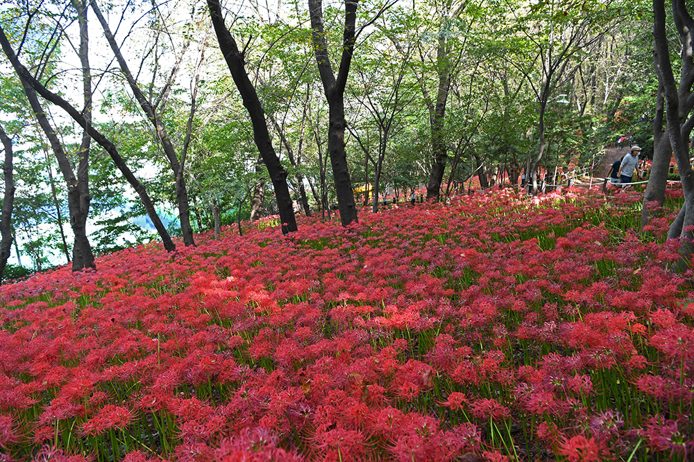 조형물 부근은 넓게 펼쳐진 꽃무릇 군락지를 즐길 수 있는 곳입니다. 개인적으로 가장 좋아하는 포인터죠. 여기서 즐거운 시간을 가져봅니다^^