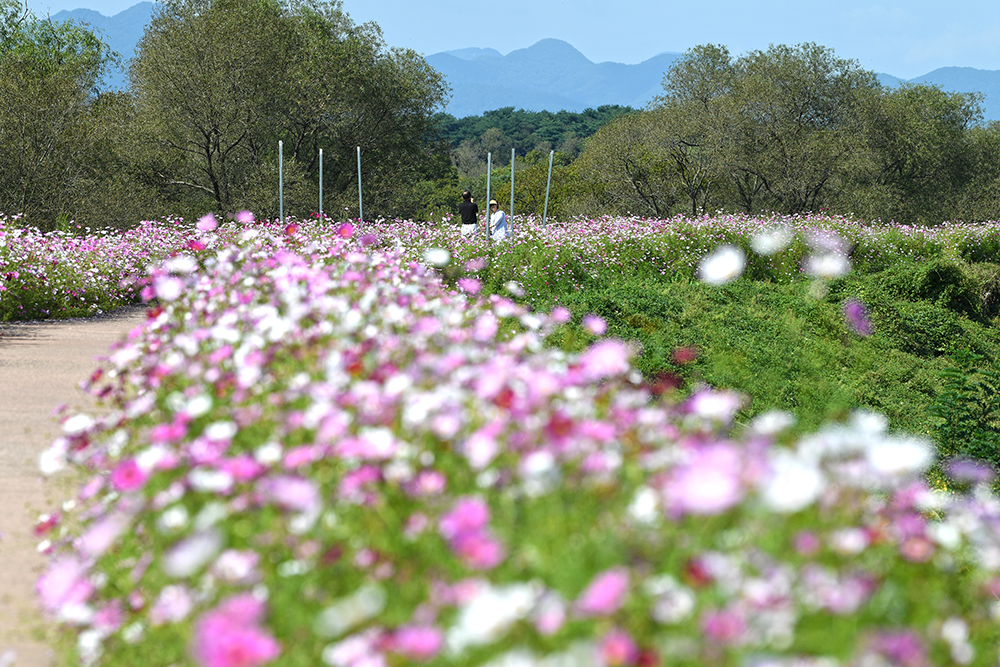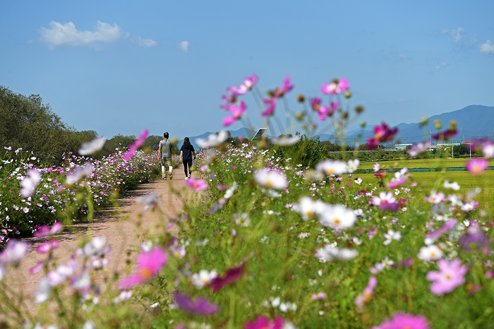 코스모스 길을 따라 산책을 즐기는 방문객들의 모습을 담아봅니다. 여유롭게 산책을 즐기는 모습이 참 좋습니다. 어쩌면 조만간 찾아올 '위드코로나' 시대의 우리의 모습은 아닐런지요...