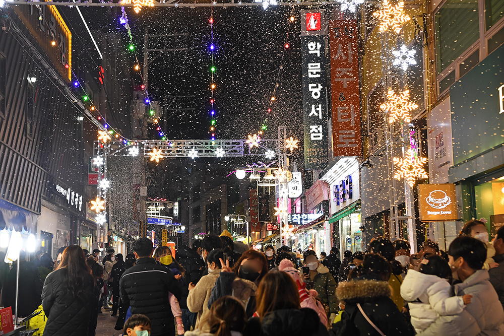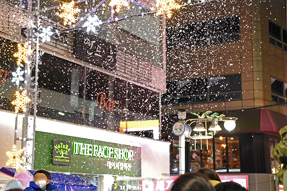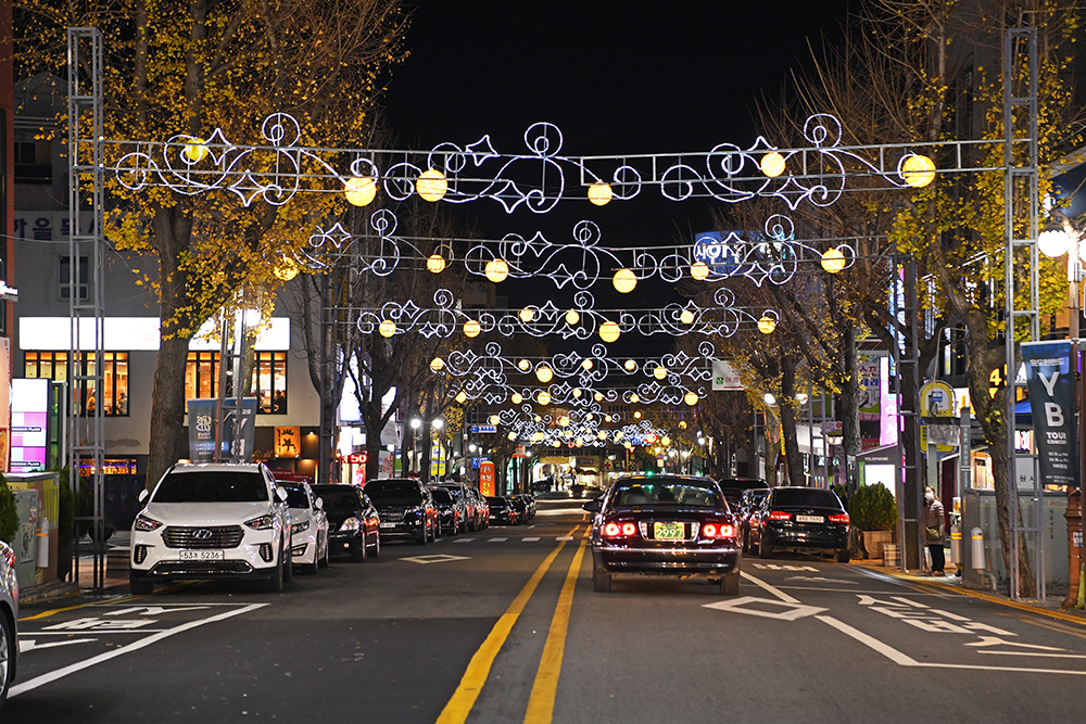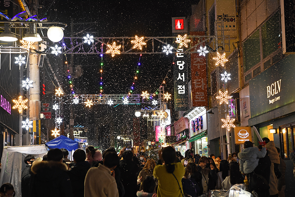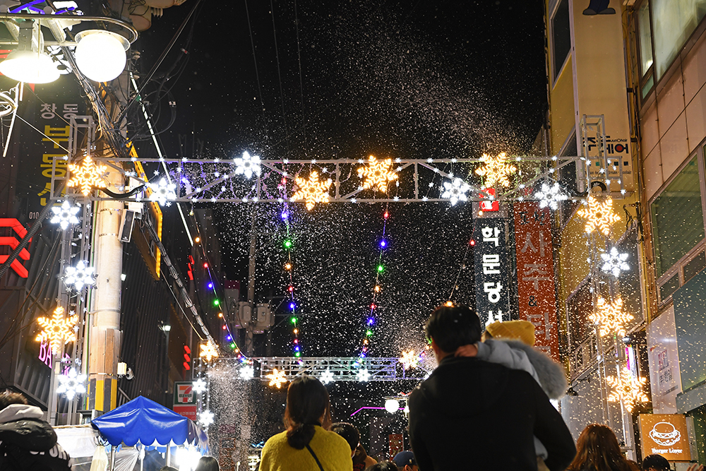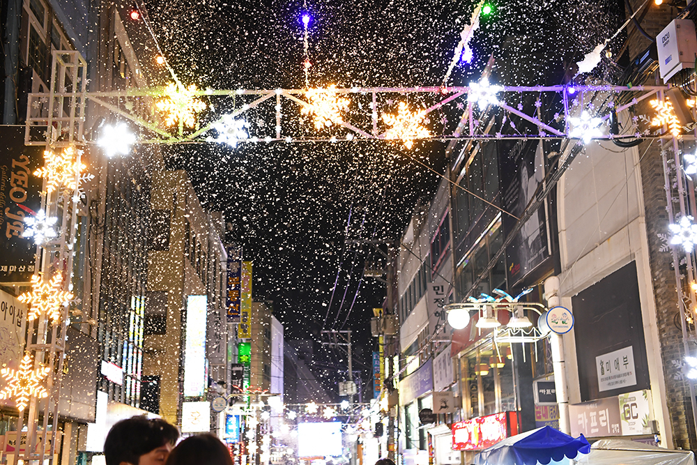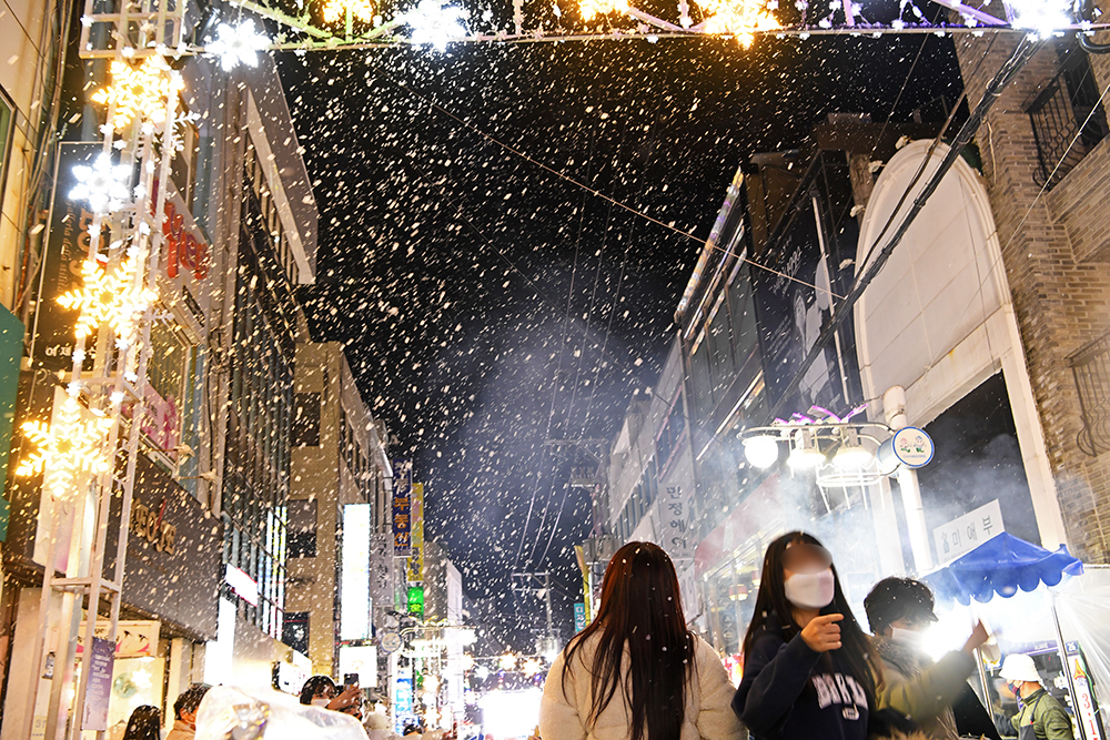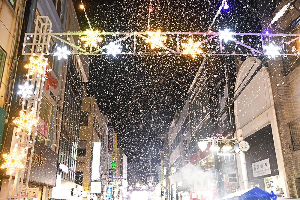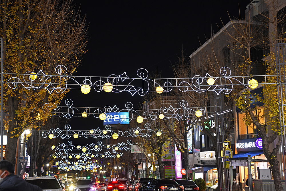 창동에서 인공눈을 즐긴 후 불종거리로 나왔습니다. 올해도 어김없이 불빛 조명을 설치했습니다. 코아양과 앞에서 아름다운 불빛 조명을 즐겨 봅니다. ㅎㅎ