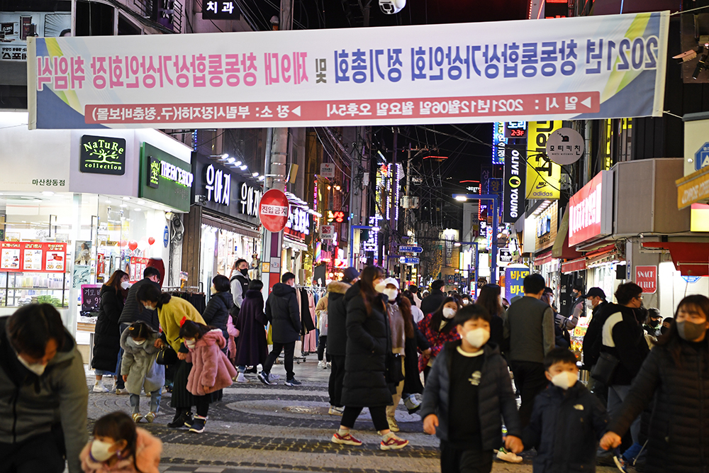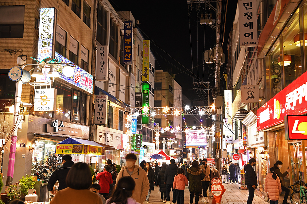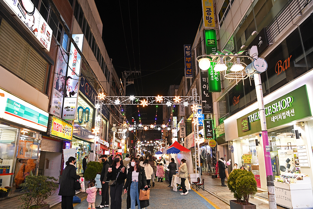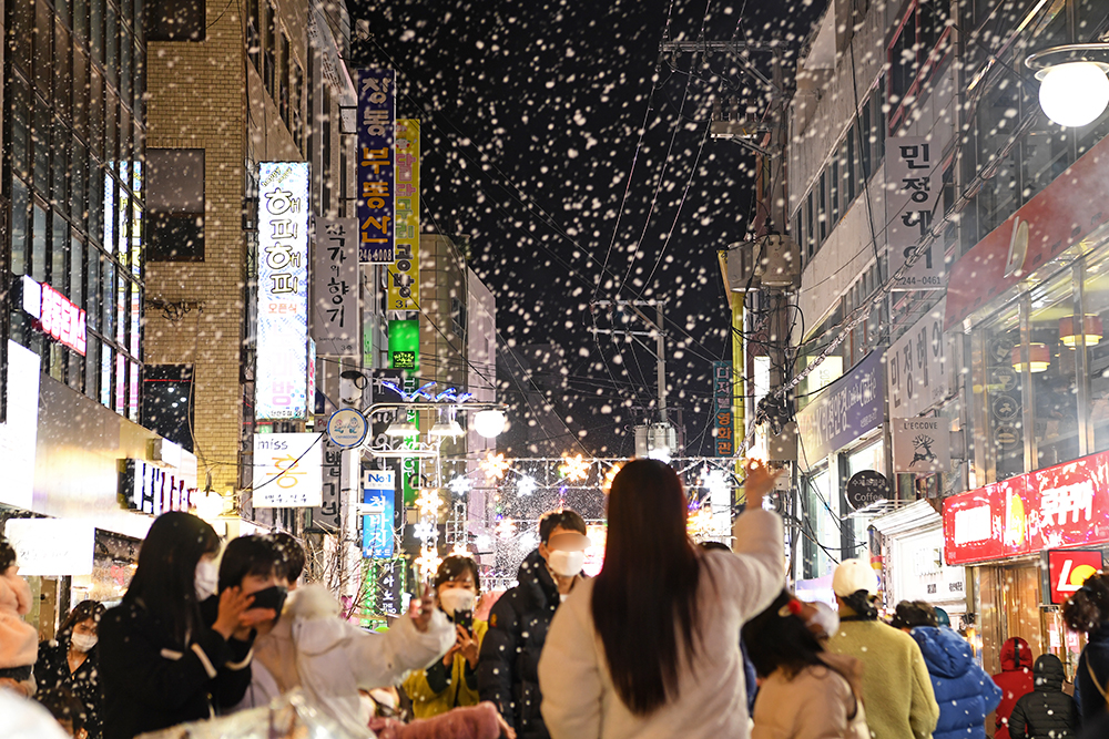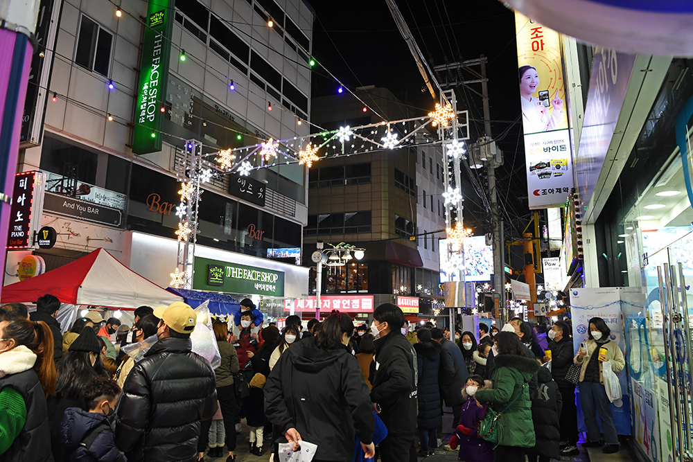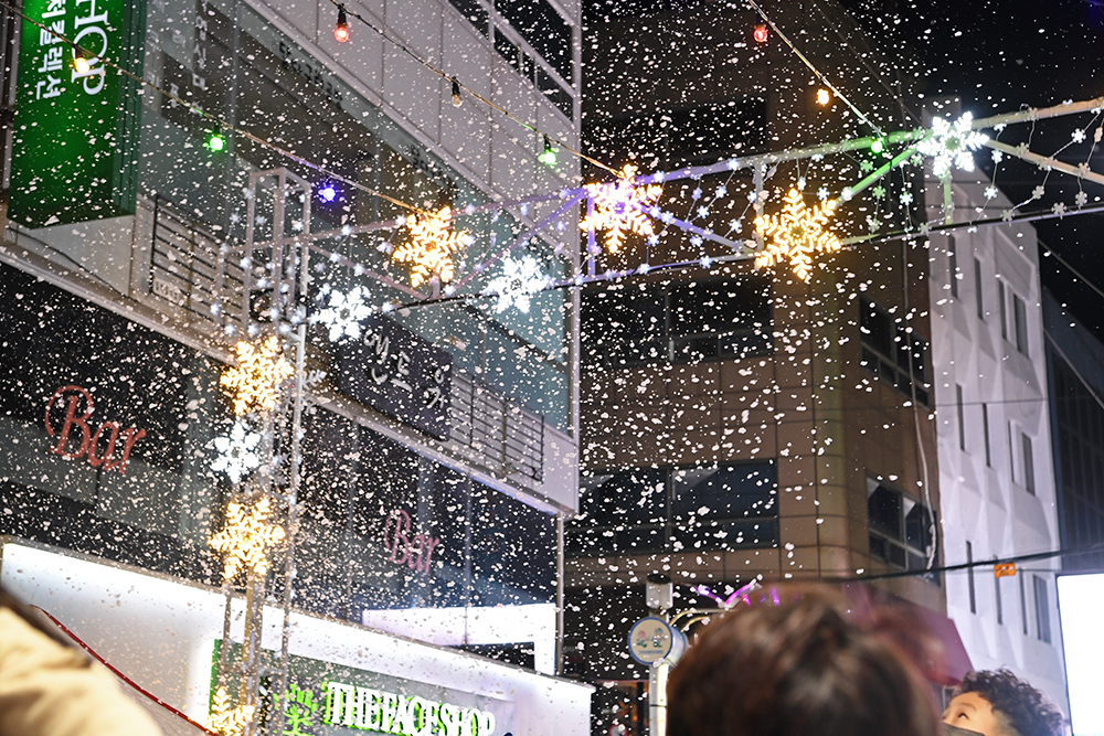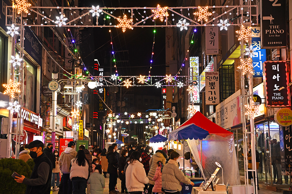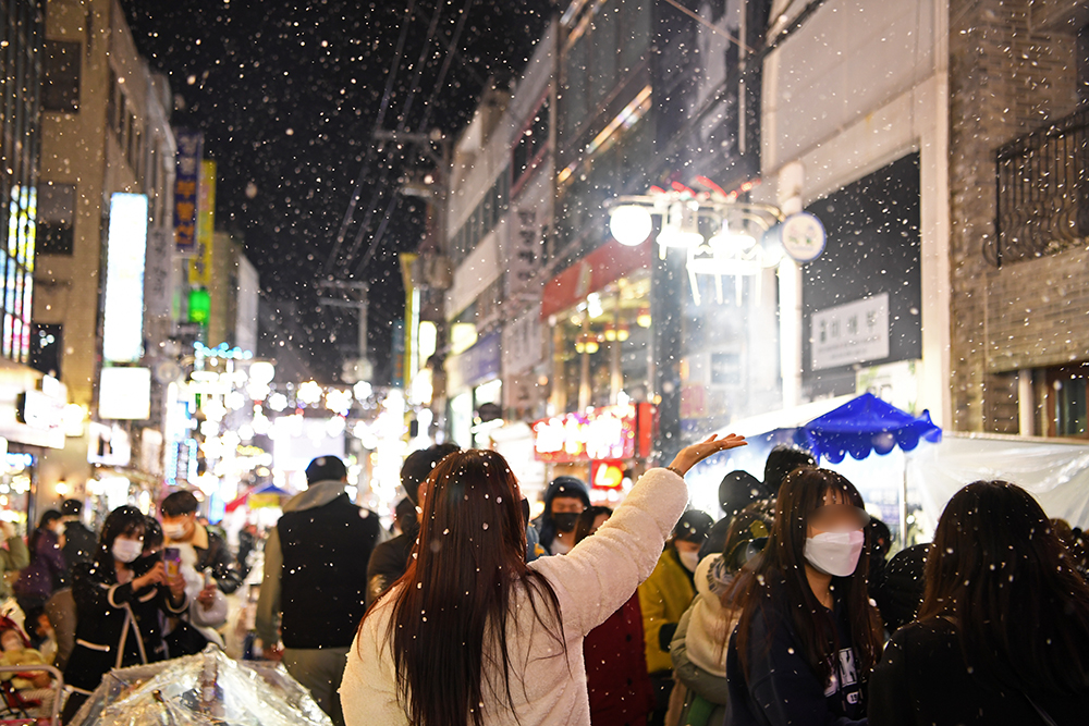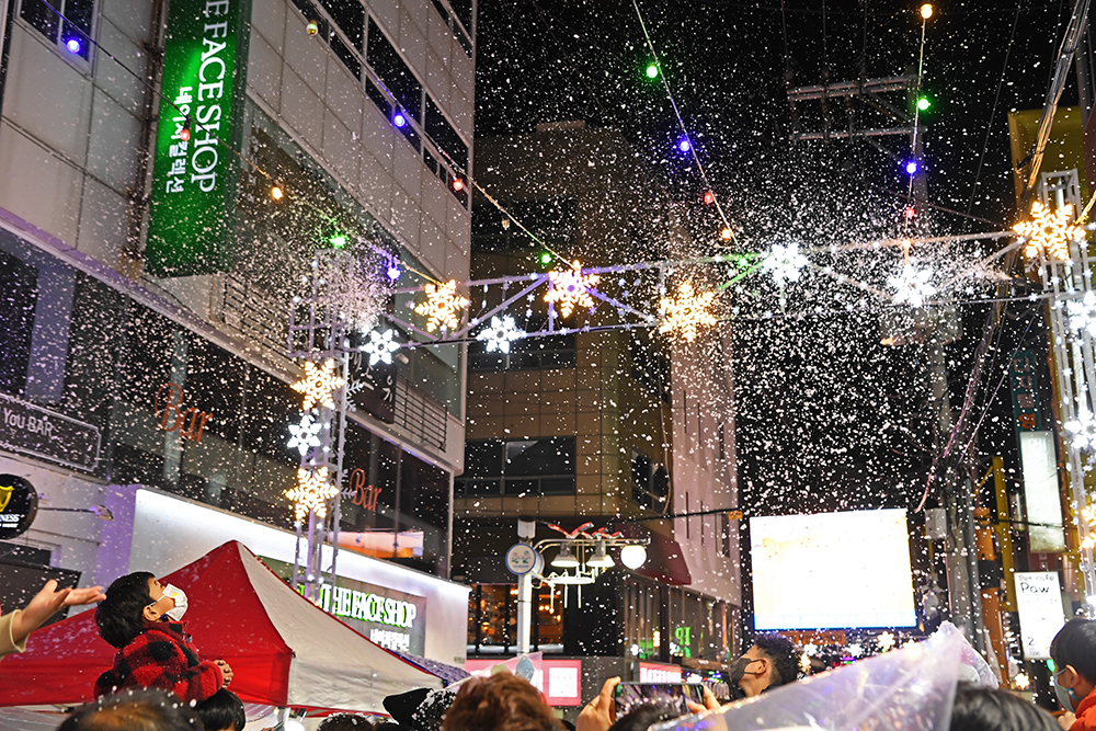 창동에서 인공눈을 즐긴 후 불종거리로 나왔습니다. 올해도 어김없이 불빛 조명을 설치했습니다. 코아양과 앞에서 아름다운 불빛 조명을 즐겨 봅니다. ㅎㅎ