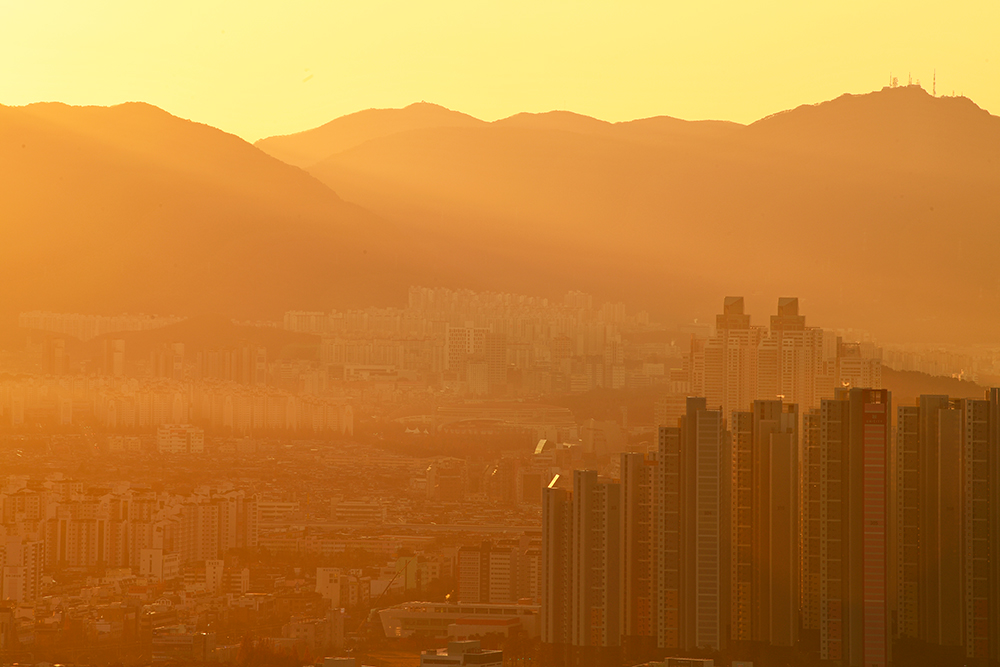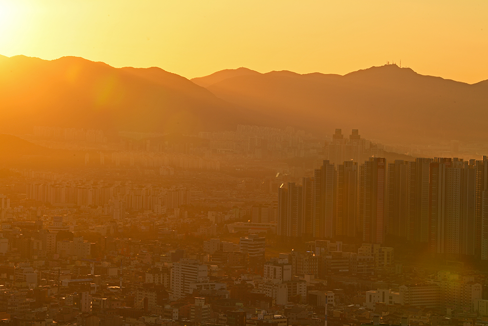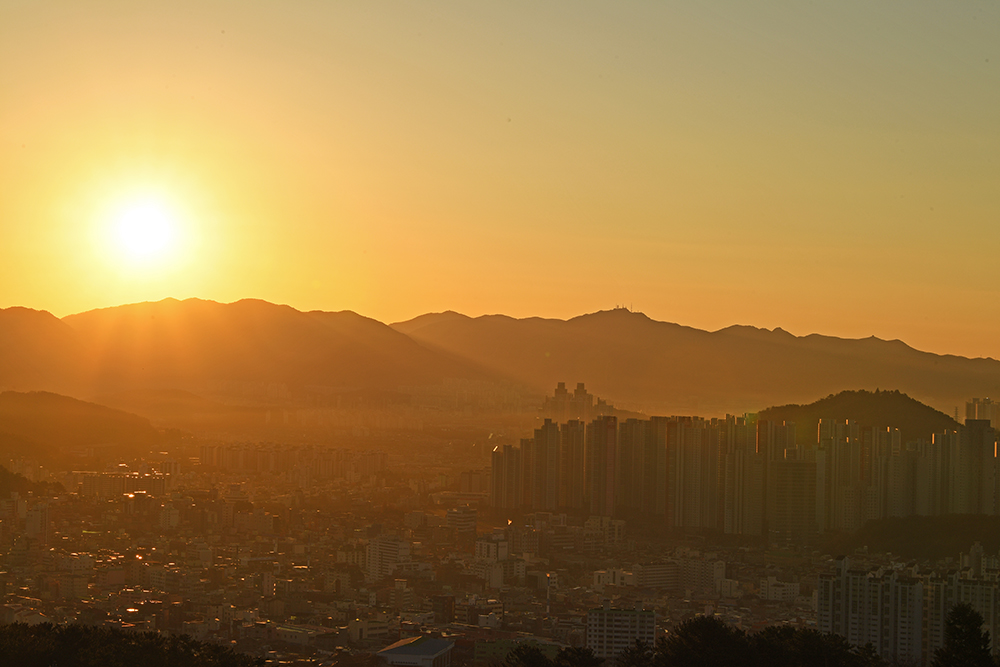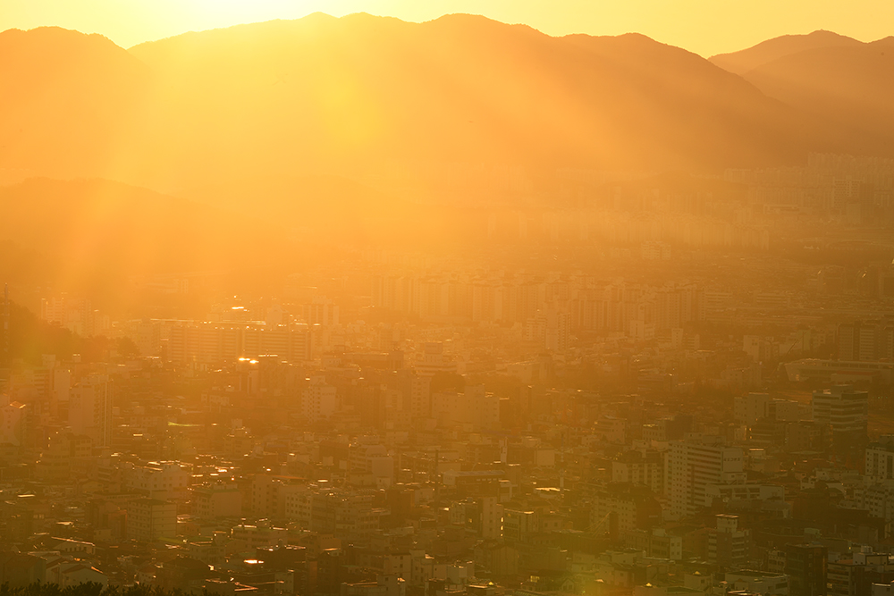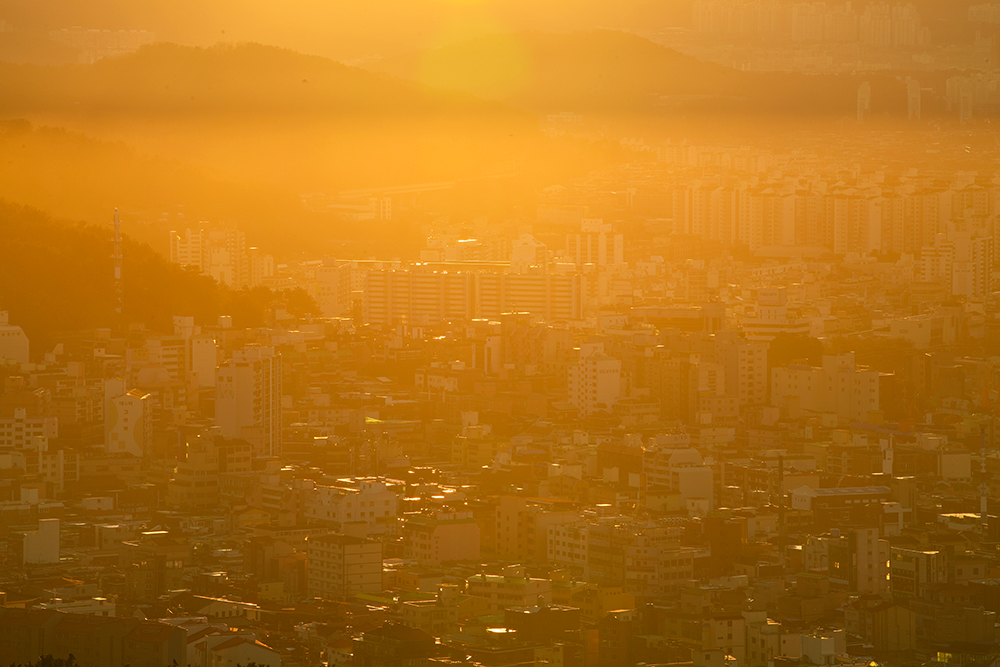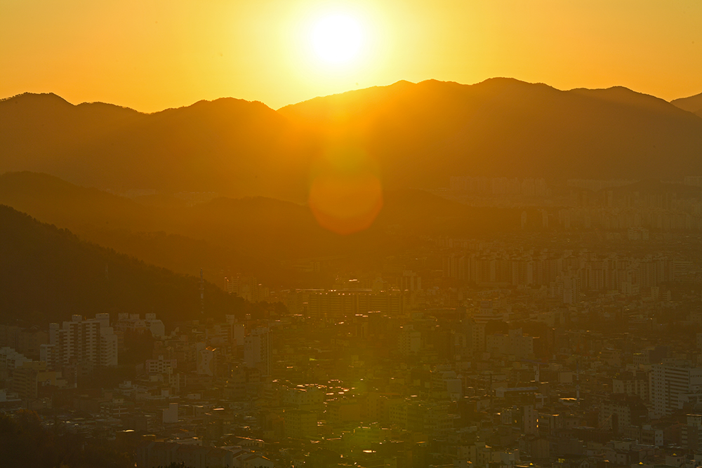 약한 안개 탓일까? 온통 황금빛으로 물드는 도심이 참 포근하게 느껴집니다. 그 동안 잘 몰랐던 우리 지역의 낮선 모습입니다. ㅎㅎ