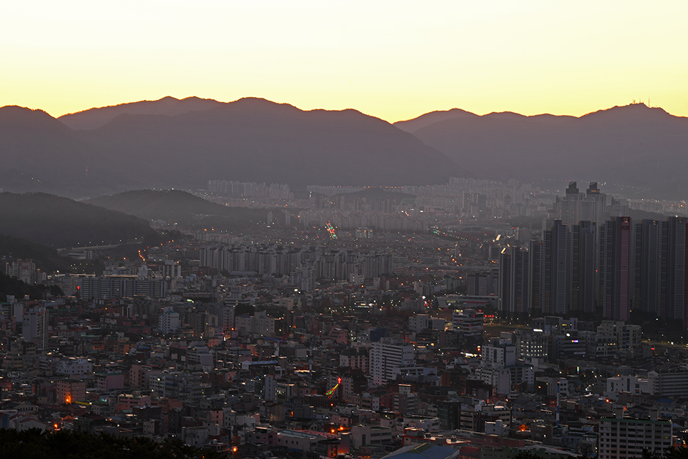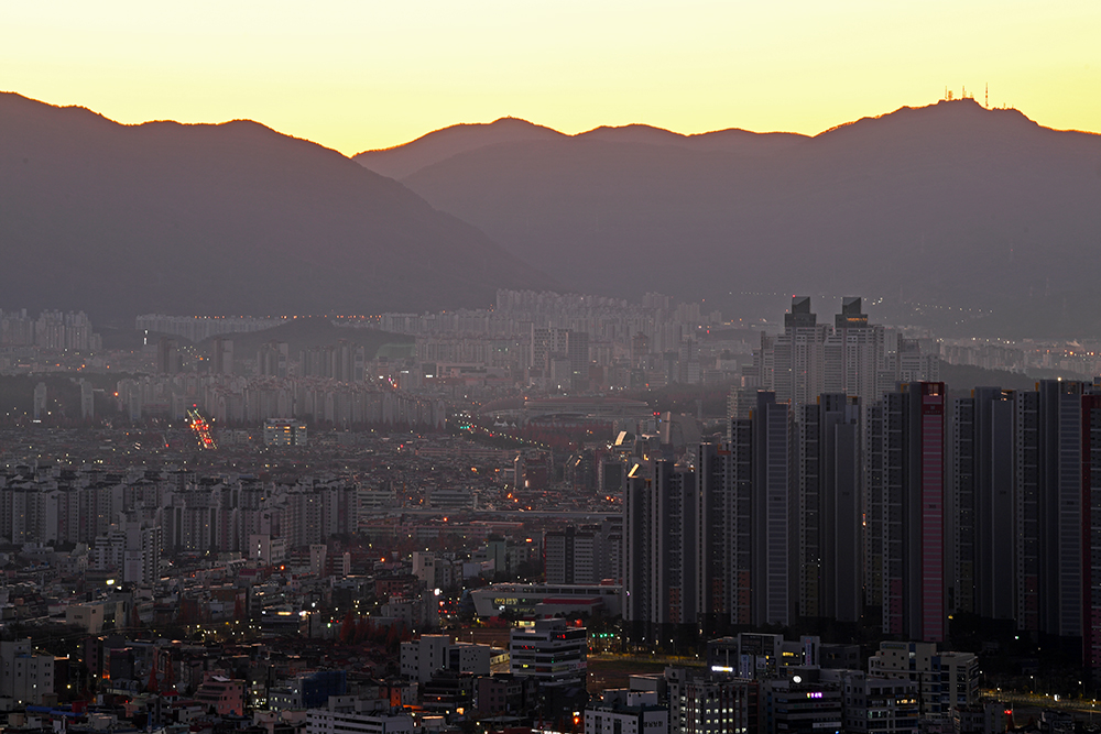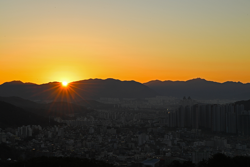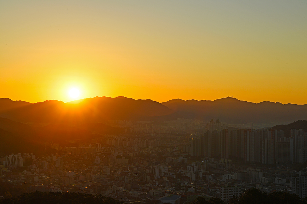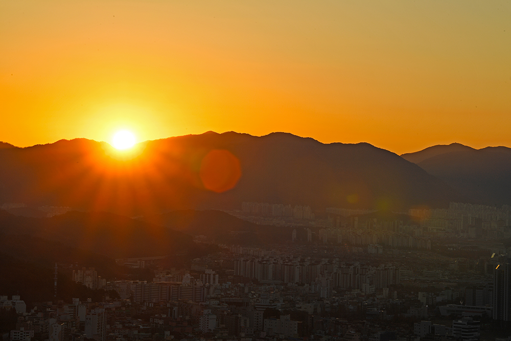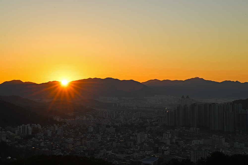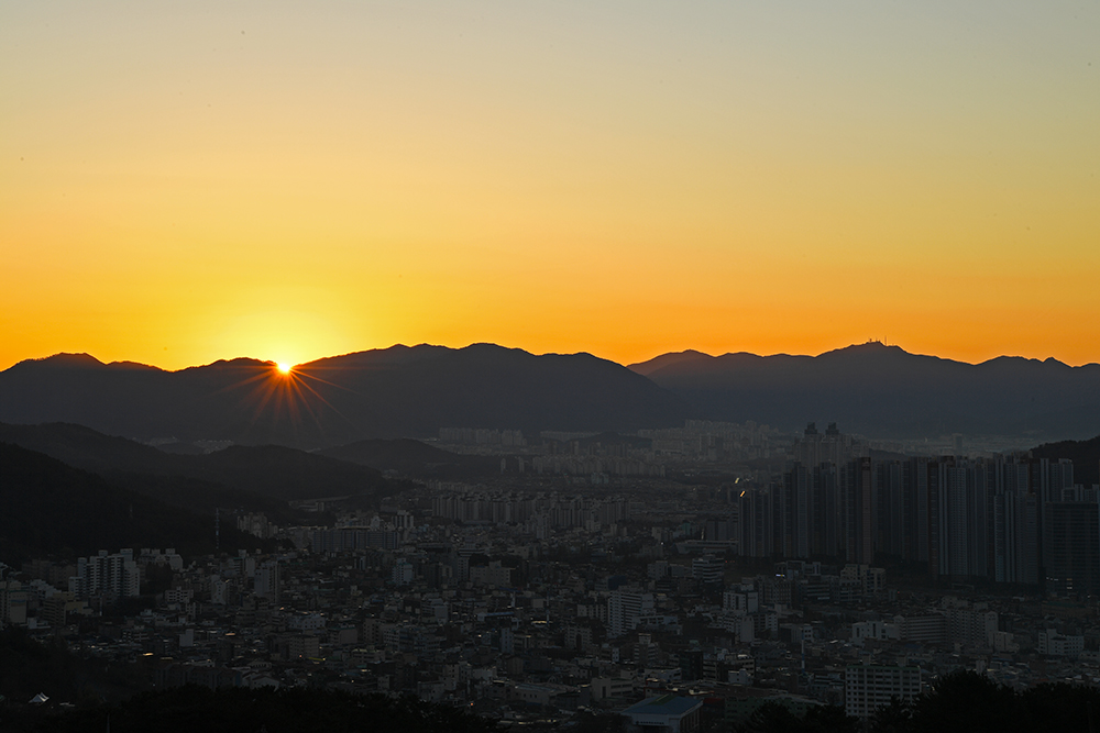 약한 안개 탓일까? 온통 황금빛으로 물드는 도심이 참 포근하게 느껴집니다. 그 동안 잘 몰랐던 우리 지역의 낮선 모습입니다. ㅎㅎ