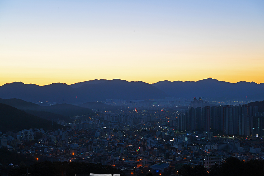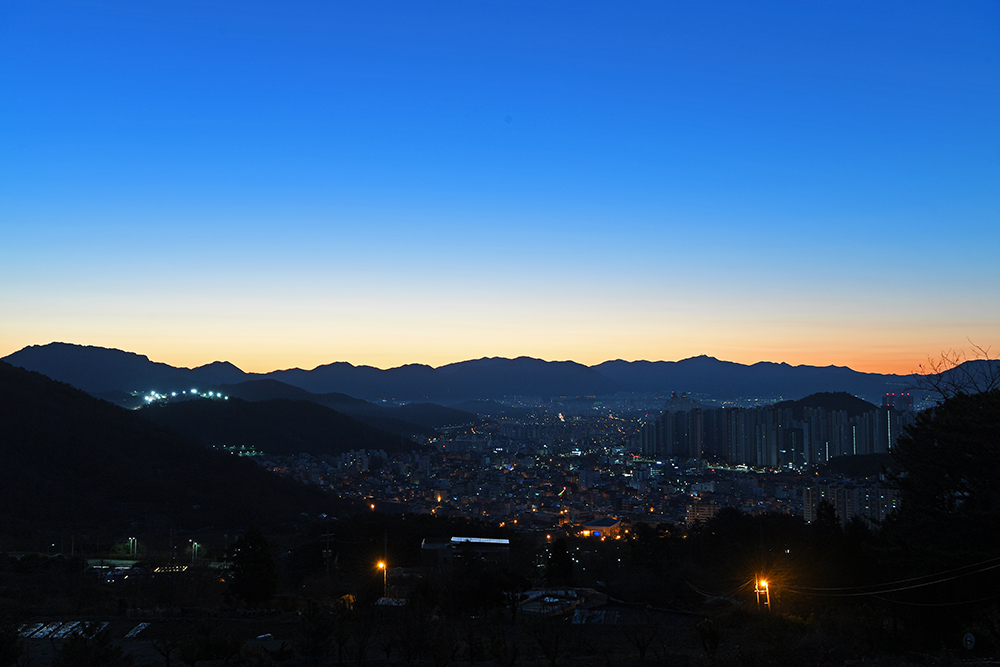 창원 지역은 분지 형태입니다. 그래서 높은 산 위로 해가 올라오죠. 서서히 주변이 밝아 오지만 태양은 아직입니다. 그래서 여명 빛이 감도는 도심의 새벽을 담아봅니다.