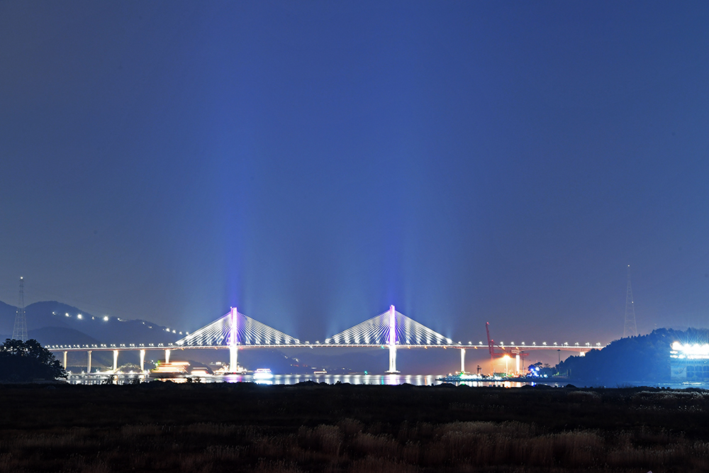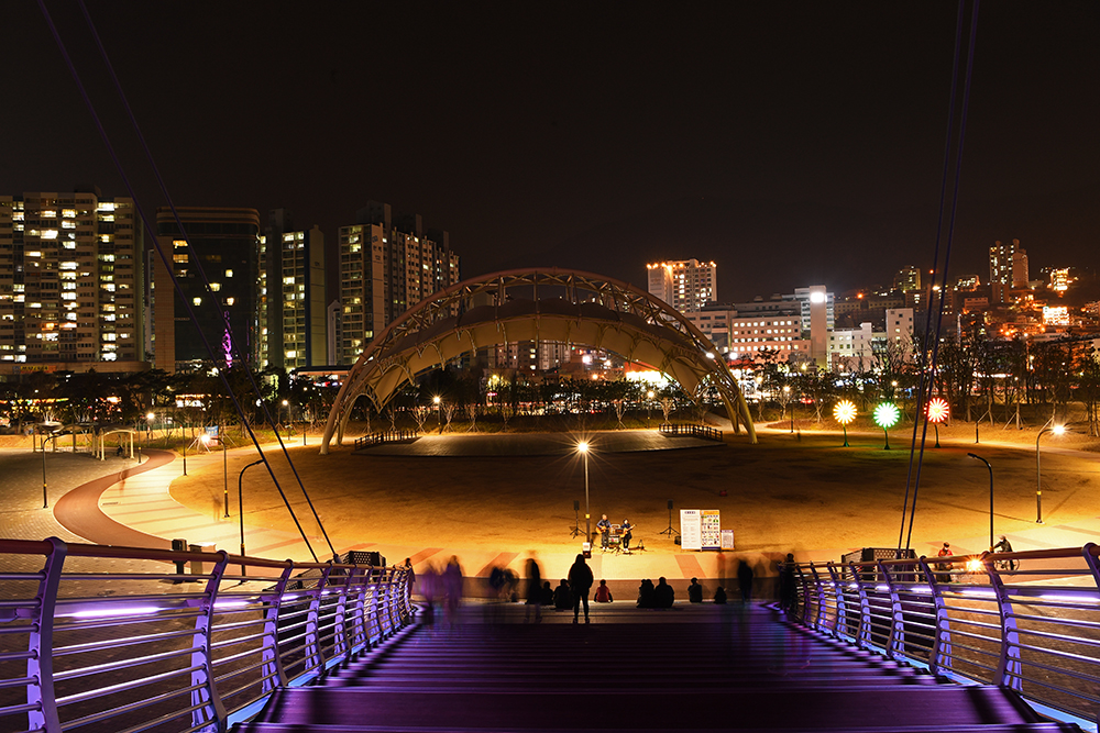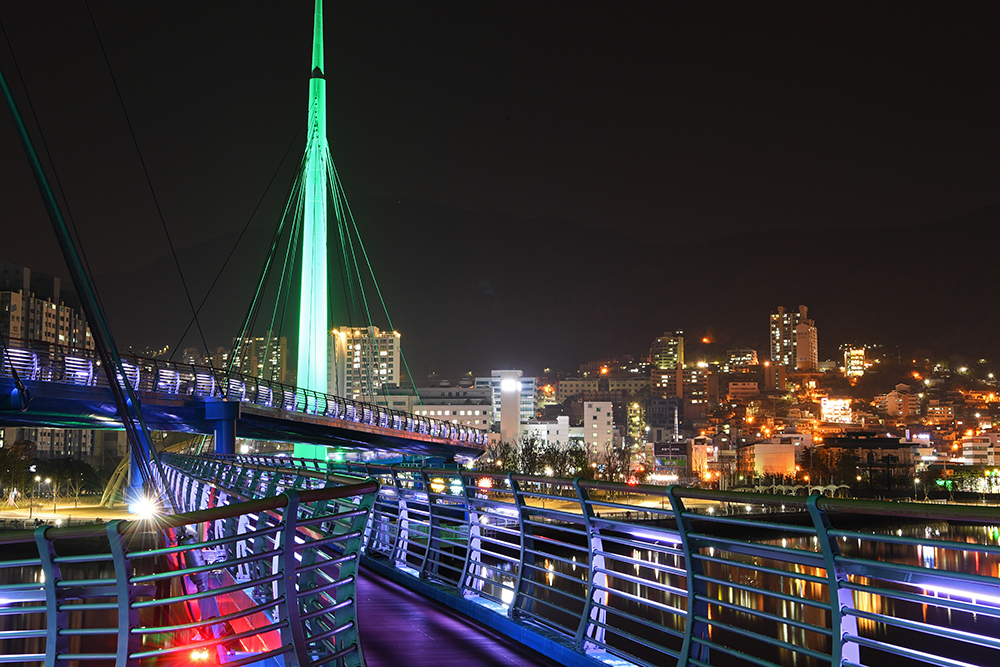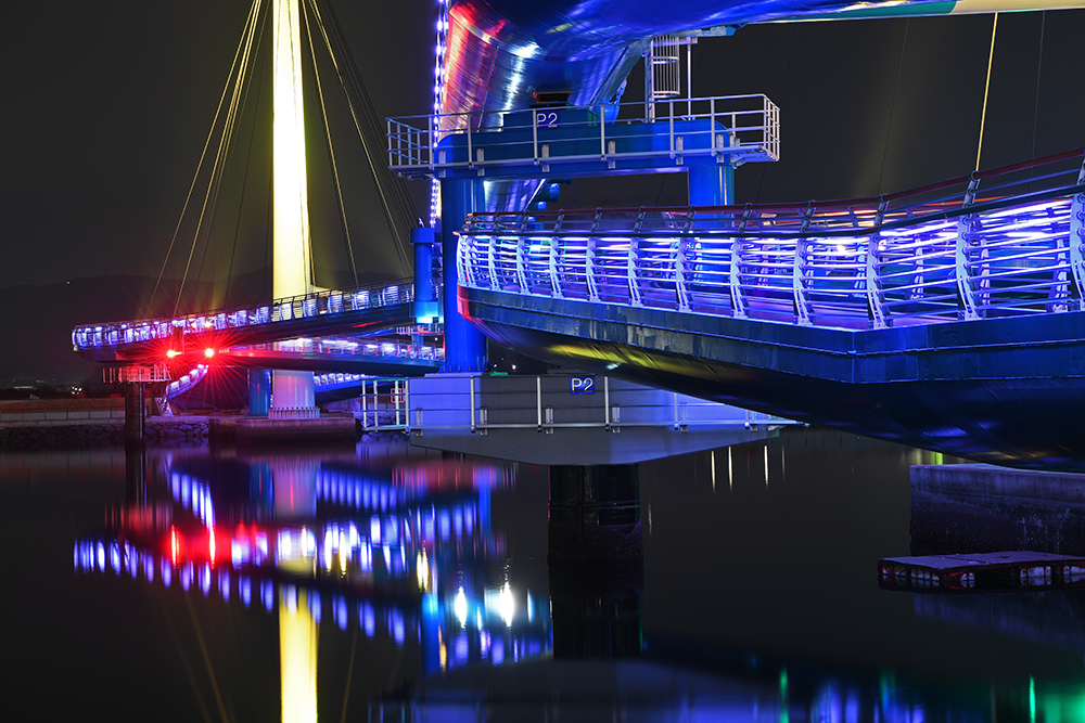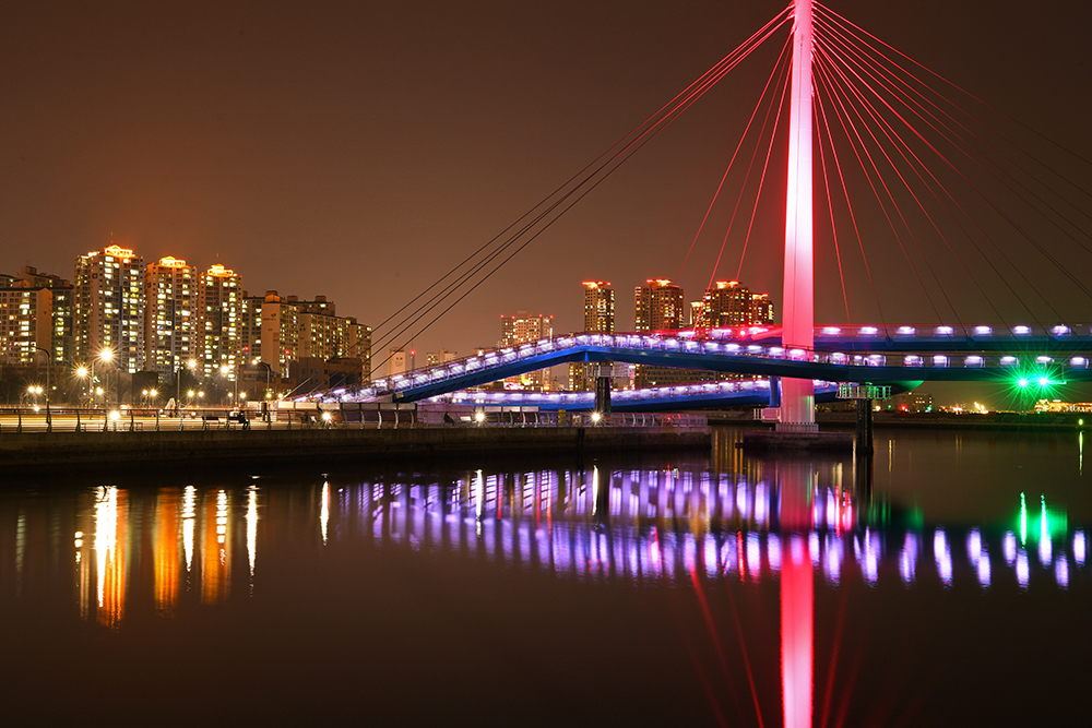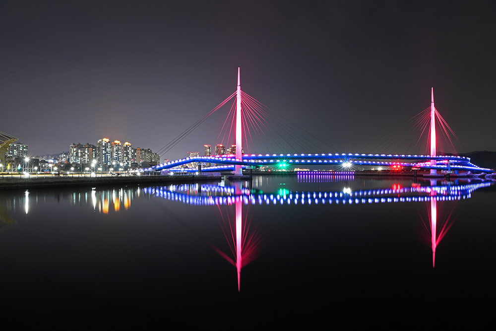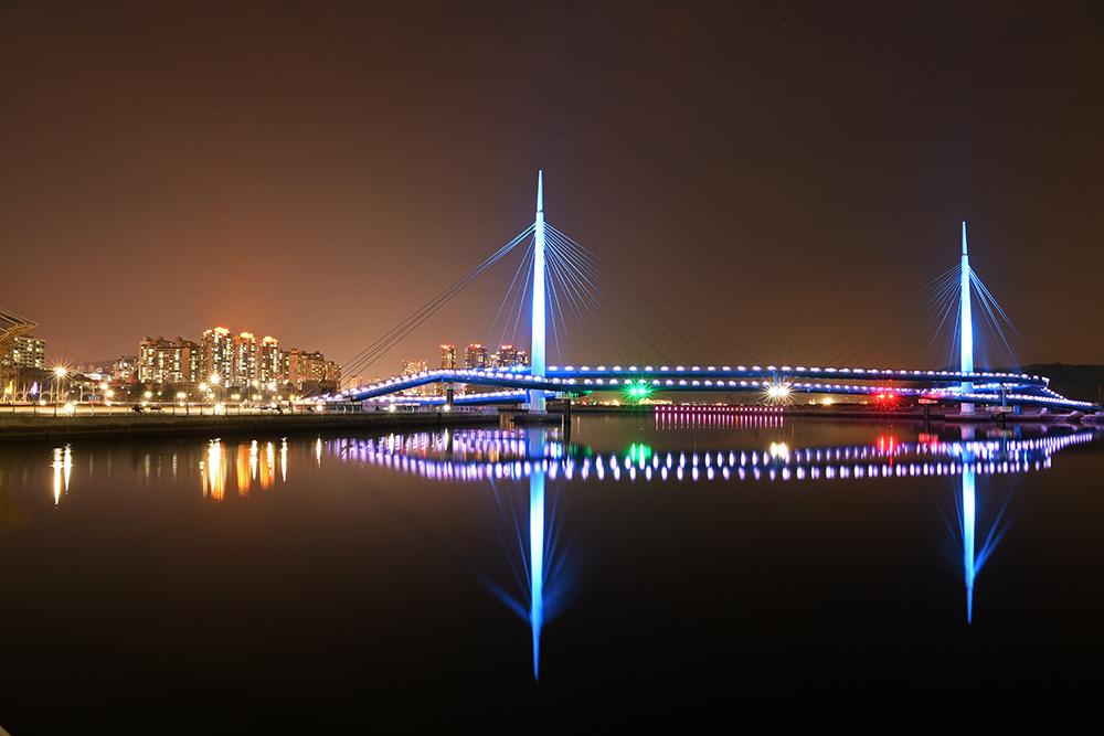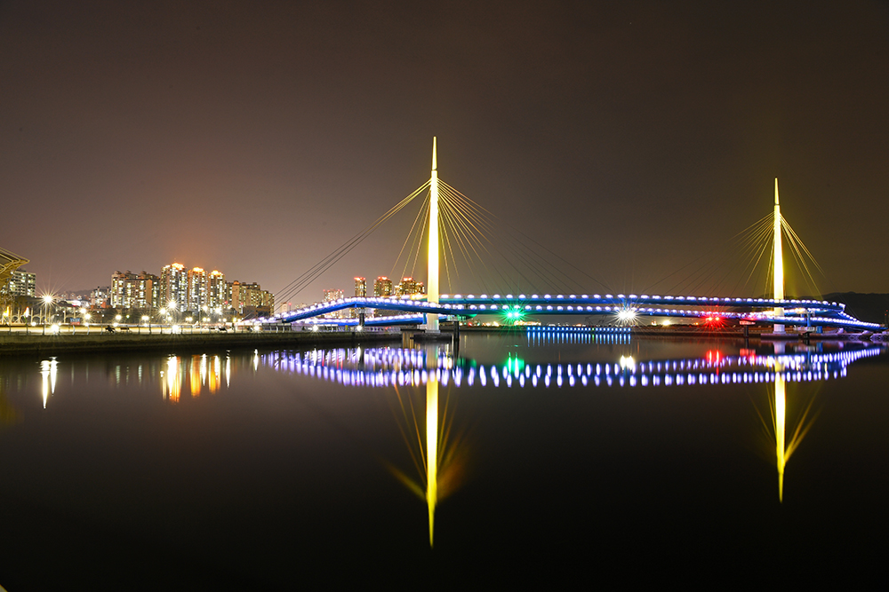 보도교는 바다 건너 해양신도시와 연결되어 있습니다. 해양신도시는 인공섬으로 아직 공사중이라 개방되지 않습니다. 하지만 보도교 위에서 도심쪽으로 바라보는 야경 모습이 대단히 멋집니다.