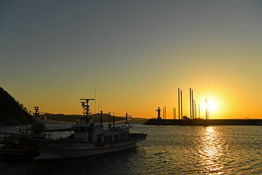SD카페의 멋진 분위기에 취해 어정거리다가 그만 늦어버렸습니다.ㅠㅠ 바다를 바라보며 헐레벌떡 항구로 뛰어갔습니다. 항구에 정박한 어선과 등대를 배경으로 일몰포인터를 찾아봅니다. ㅎㅎ