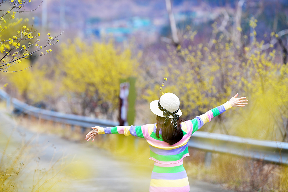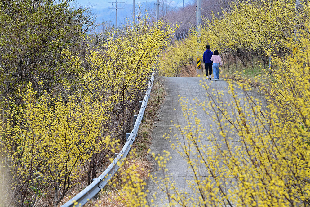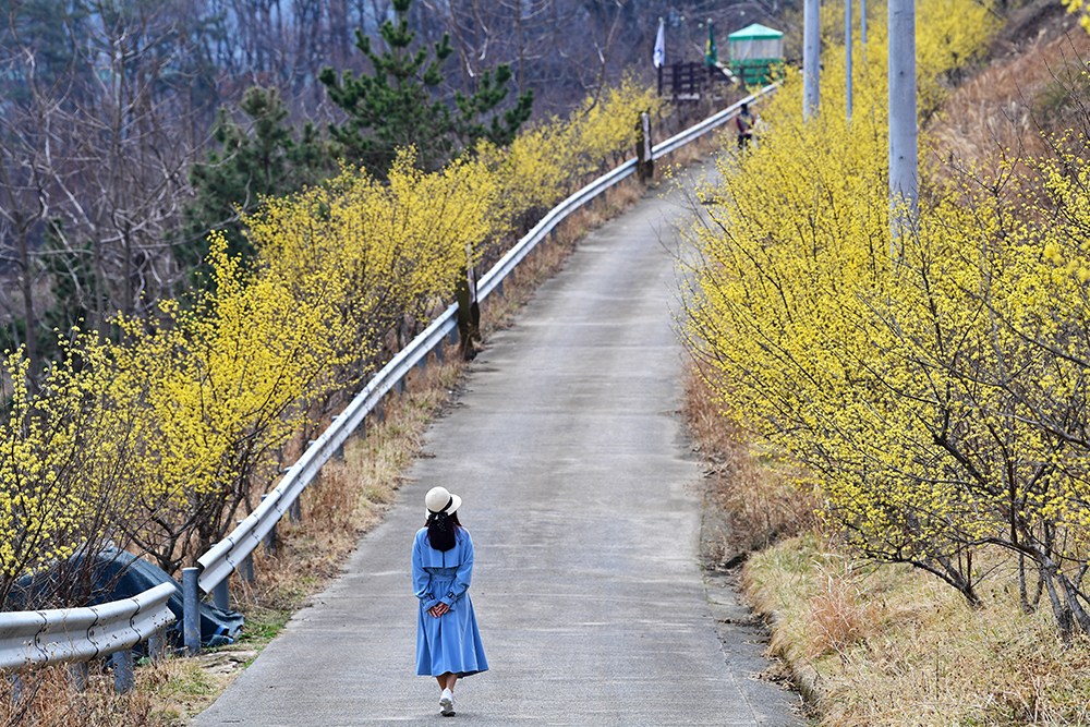 정자를 지나 전망테크까지 걸어 볼 요량입니다. 인적이 드문 노란 산수유 길을 유유자적 걸어 봅니다. ㅎㅎ