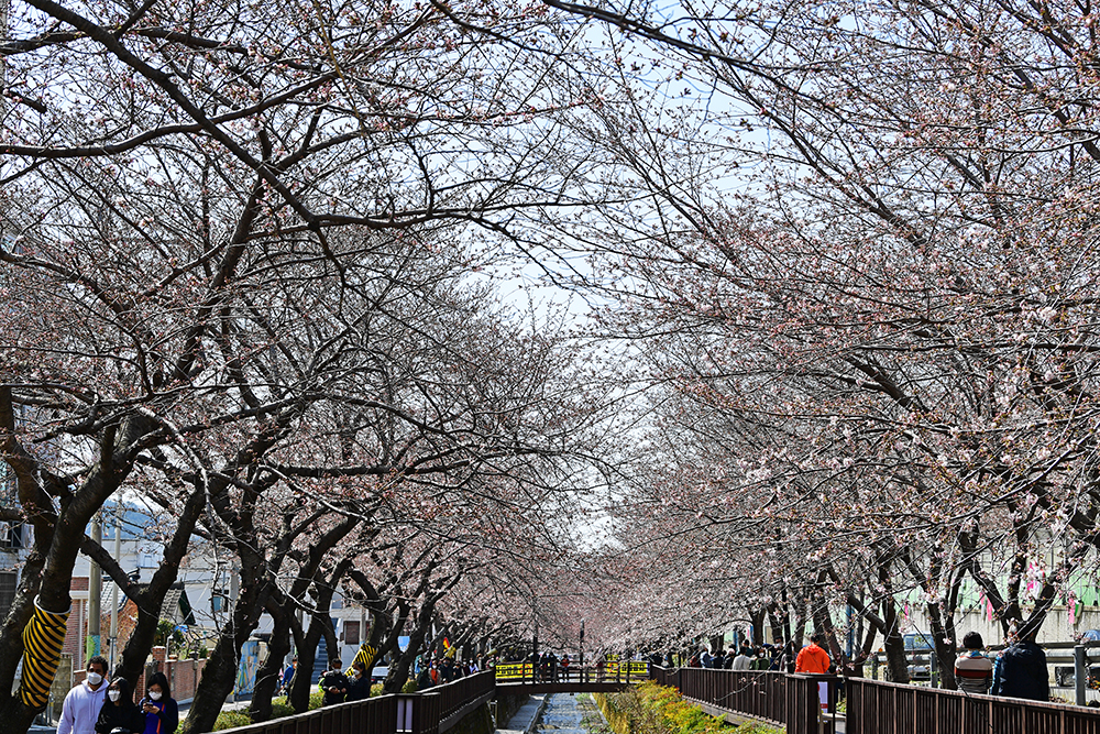오전이라 한산할 줄 알았습니다. 그런데 왠걸? 차량통제와 함께 제법 많은 사람들로 붐빕니다. 어렵사리 주택가에 주차한 후 진해환경생태공원 부근의 여좌천 상류에 도착했습니다. 벌써부터 개화한 녀석들도 있지만, 대부분은 당장이라도 꽃망울을 피울 기세입니다. 상류의 데크를 따라 걸으며 새봄과 함께 찾아온 벚꽃을 즐겨 봅니다.