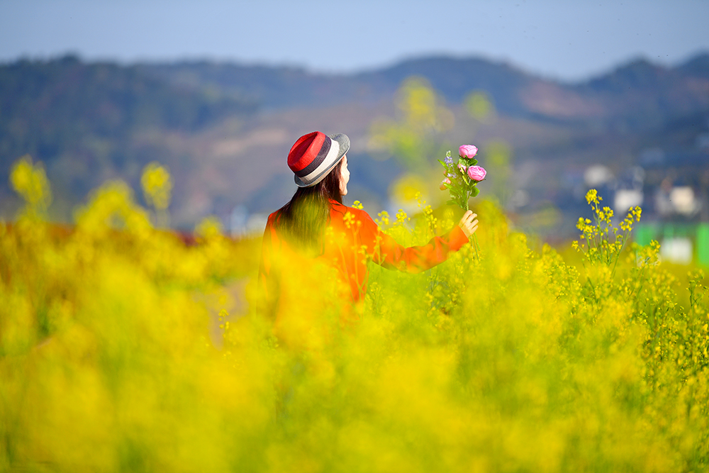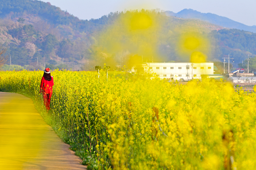 그런데 노란 유채꽃 배경으로 빨간 정장이 잘 어울릴 것 같습니다. 전속 모델에게 주남저수지에 가서 빨간 옷을 한번 만 더 입어달라고 간청을 하니, 여지없이 오케이 싸인을 줍니다. 그렇게 우리는 주남저수지 유채꽃 군락지를 찾았습니다.