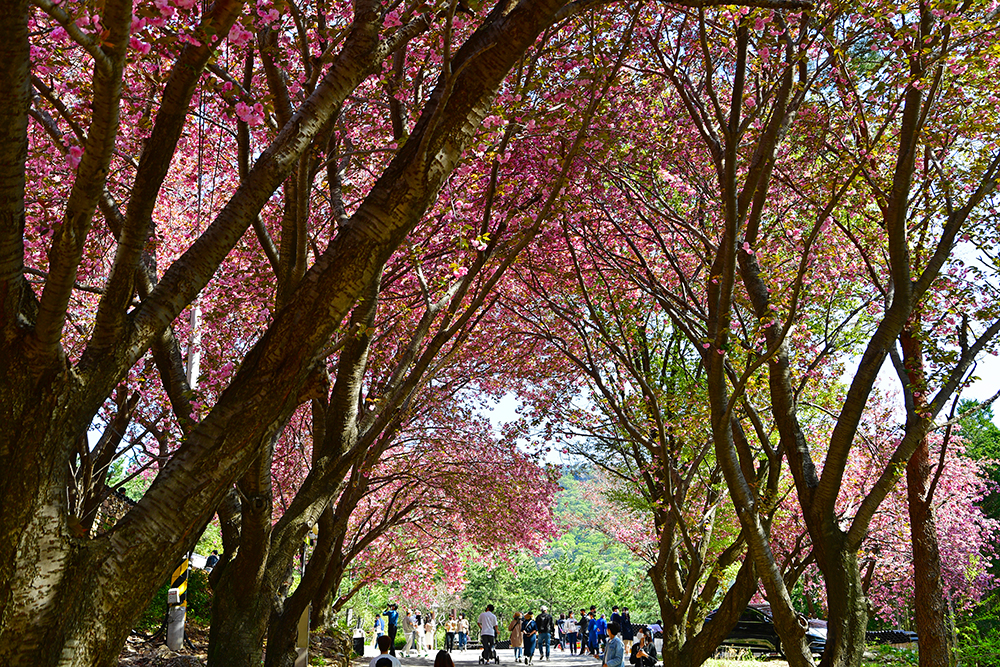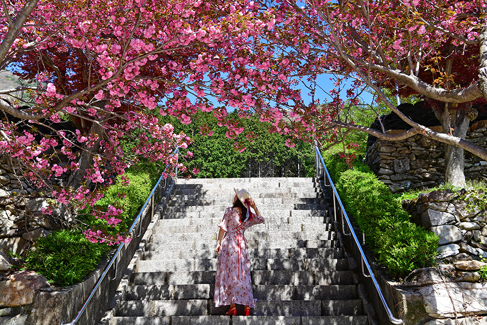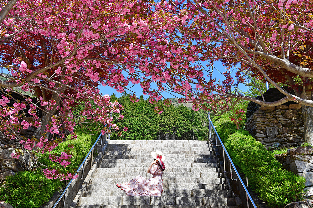 벚꽃 엔딩의 시간은 진분홍빛 꽃잎이 풍성한 겹벚꽃 시간의 시작입니다. 어디가 좋을까? 여러 곳을 살펴봤습니다. 그 중 계단을 뒤덮는 겹벚꽃과 멋진 모습을 촬영할 수 있는 사천 청룡사가 제법 유명합니다.