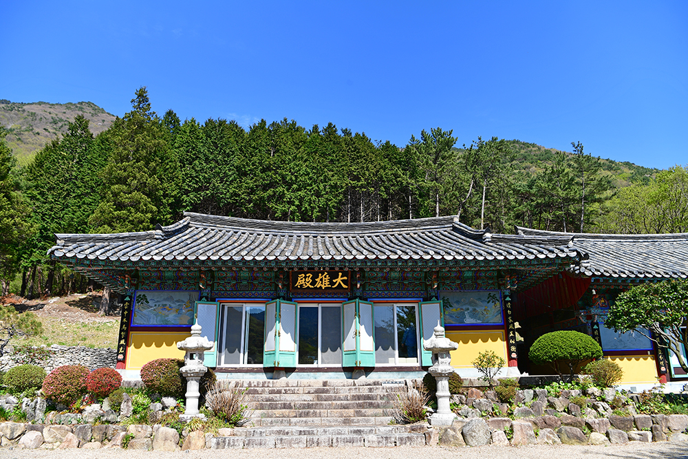 어렵사리 촬영을 마친 후 계단을 올라 경내로 들어 섭니다. 대웅전과 명부전, 산신각이 있는 작은 사찰이지만, 뒷쪽의 와룡산과 어우러진 모습은 참 아름답습니다. ㅎ
