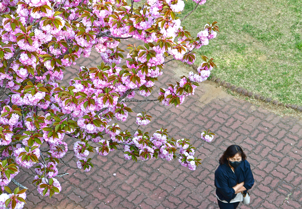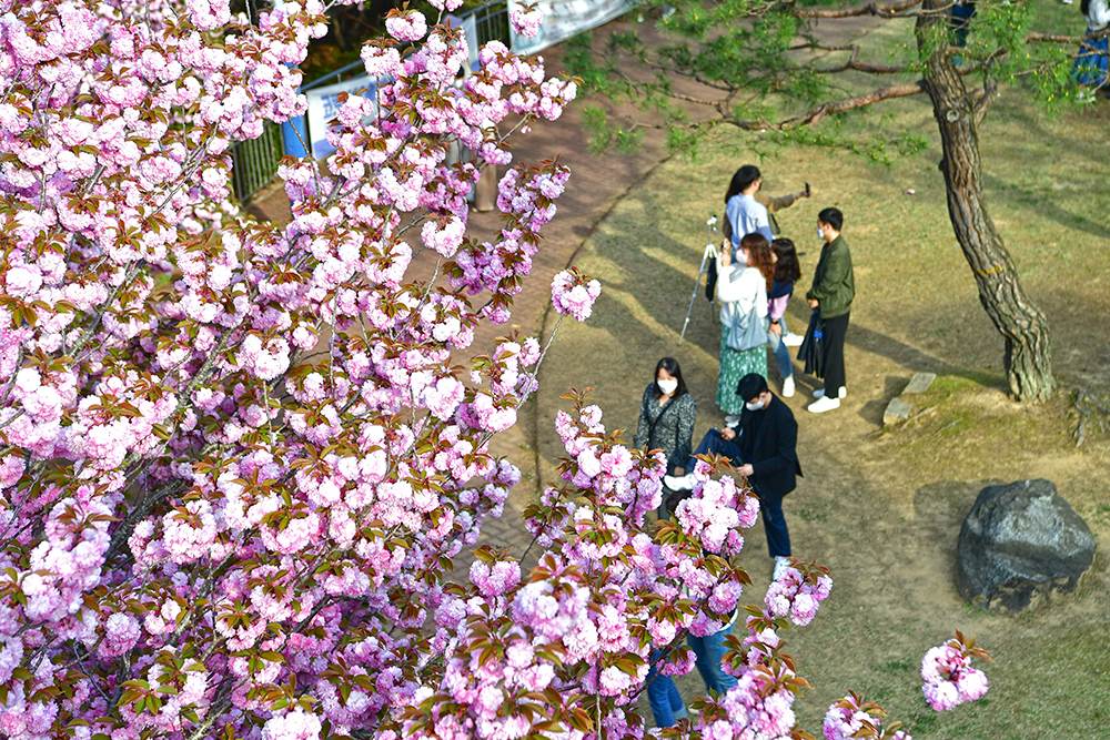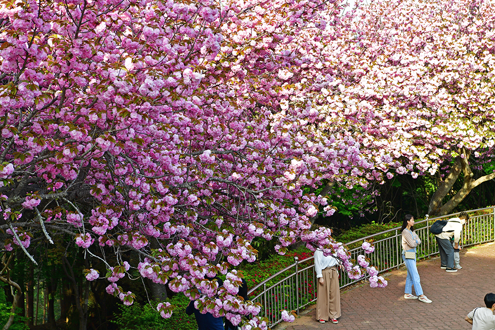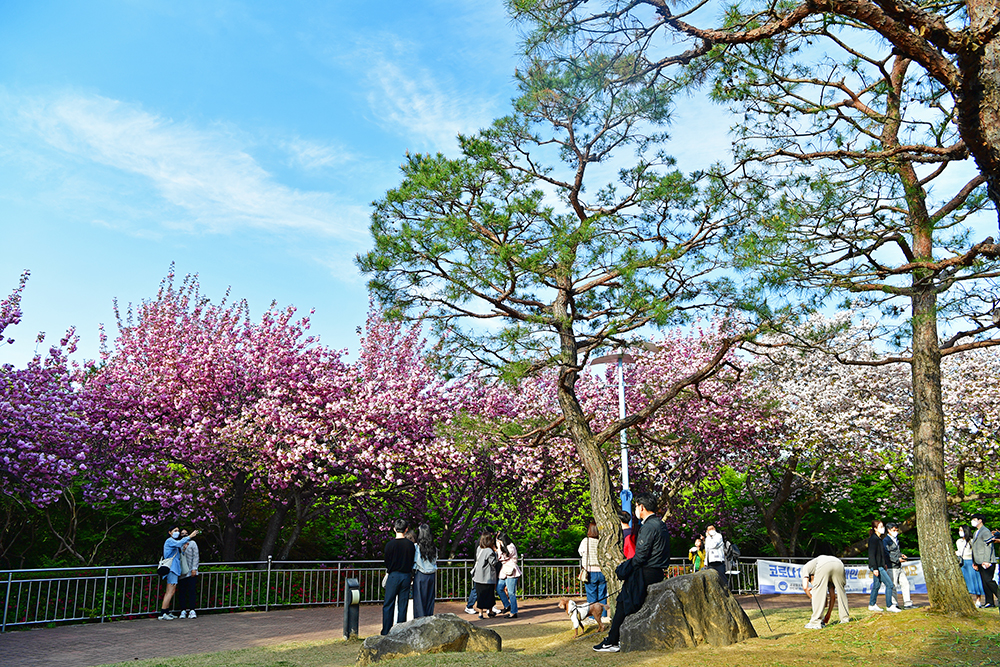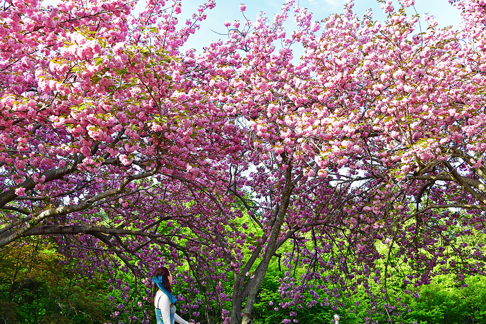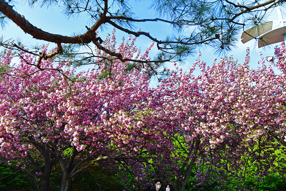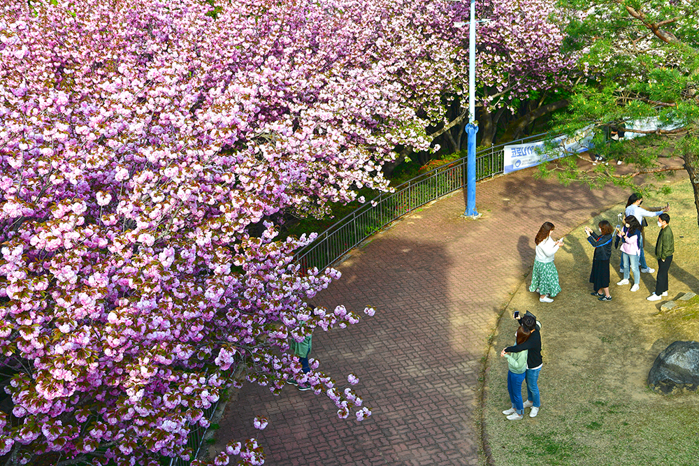 전망대에서 겹벚꽃 군락 모습을 내려다 봅니다. 풍성한 겹벚꽃 사이로 보이는 사람들의 모습이 참 즐거워 보입니다. ㅎ