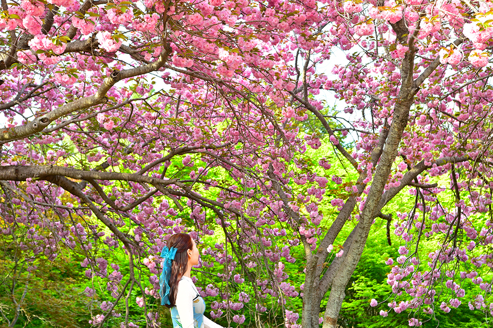 약간의 기다림 끝에 저희 차례가 되었습니다. 겹벚꽃을 배경으로 요리조리 담아봅니다. ㅎㅎ