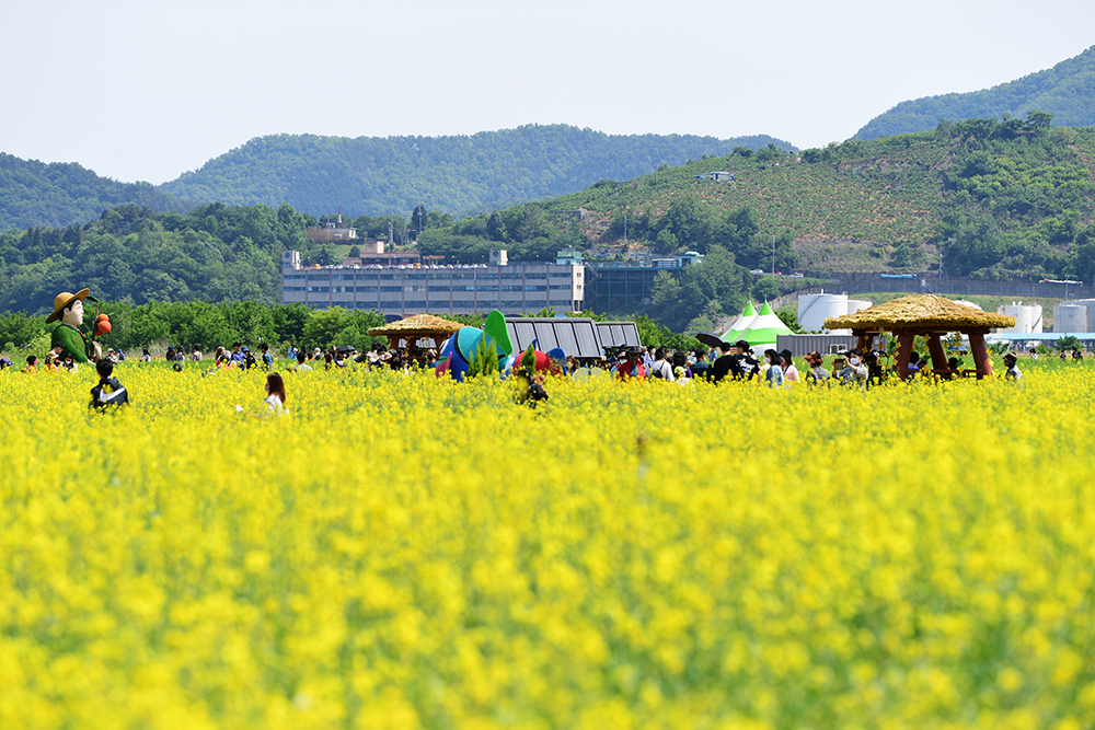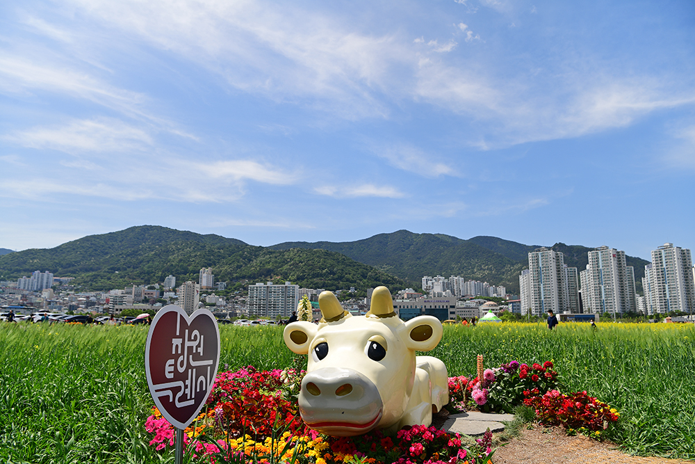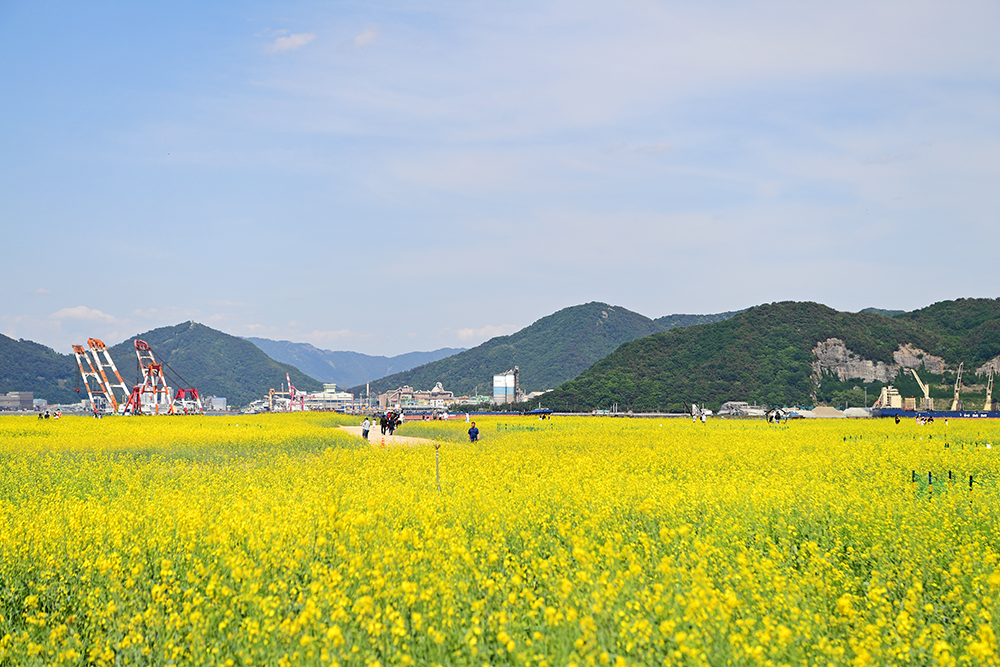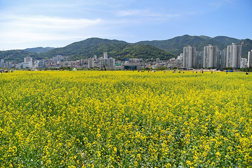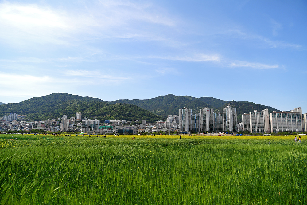 입구에서 전경을 둘러봤습니다. 8만㎡의 유채밭과 3만㎥의 청보리 밭 규모가 놀랍지만, 이렇게 큰 규모도 전체 65만㎥ 인 해양신도시의 1/6에 불과하다는 사실이 더욱 놀랍습니다.ㅋㅋ