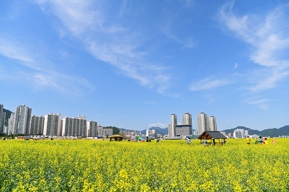 마산해양신도시의 노란 유채꽃과 푸른 청보리는 코로나19 거리두기 해제에 맞춰 찾아왔습니다. 어쩌면 이들의 화사함과 아름다움은 코로나19를 묵묵히 견뎌온 우리 자신에게 주는 선물일지도 모를 일입니다. 모처럼의 찾아온 우리의 일상입니다. 마산해양신도시에서 유채꽃의 화사함과 청보리의 시원한 청량감으로 즐겨 보시기 바랍니다. ㅎ