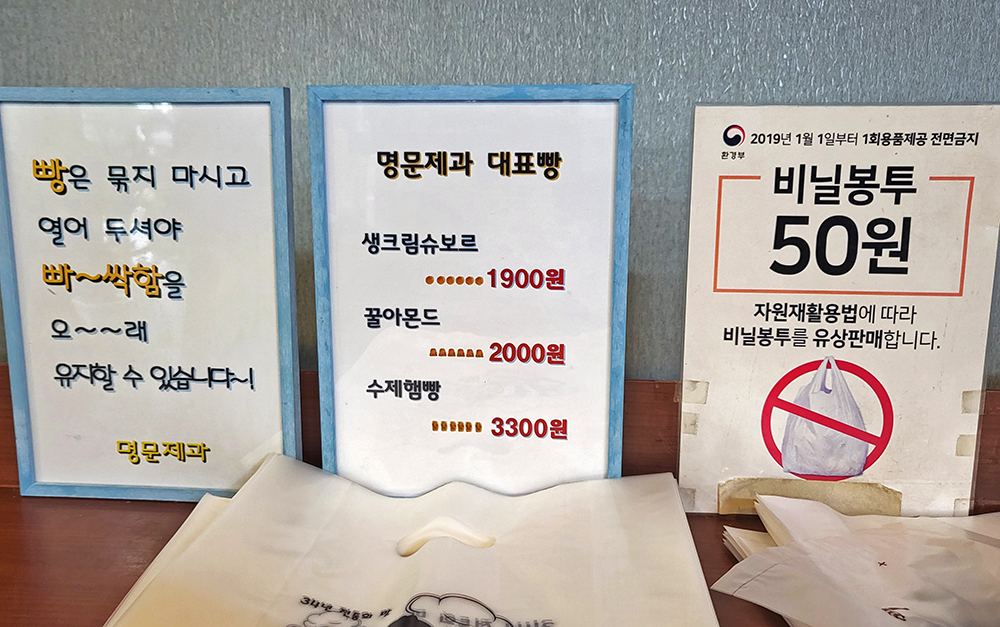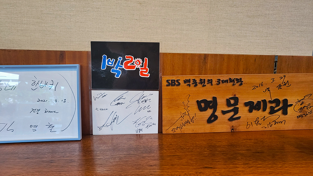 대표 메뉴를 집어들고 나니 마음이 편해집니다.ㅋㅋ 그래서 빵집 내부를 둘러 봤습니다. 여전히 좁은 공간과 빵 종류는 많지 않습니다. 그런데... 전에는 '백종원의 3대천왕' 명패만 있었는데, 그동안 KBS 1TV '김영철의 동네한바퀴'와 KBS 2T '1박2일' 팀이 다녀갔나 봅니다. 역시 명문제과의 인기는 식지않은듯 합니다. ㅎㅎ