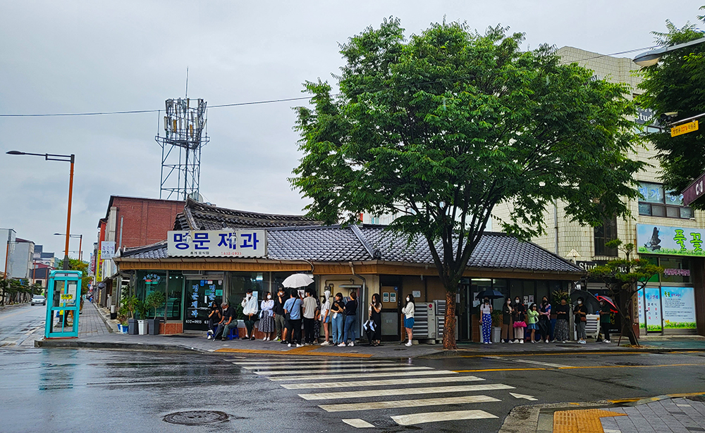 오전 10시, 오후 1시 30분, 오후 4시 30분 이렇게 하루에 세 번 빵이 나옵니다. 예전에 줄섰던 경험이 있어, 이번에는 오전 9시 20분쯤 명문제과를 찾았습니다. 나름 아침 일찍왔는데도 불구하고 줄은 서야만 했습니다. ㅎㅎ
