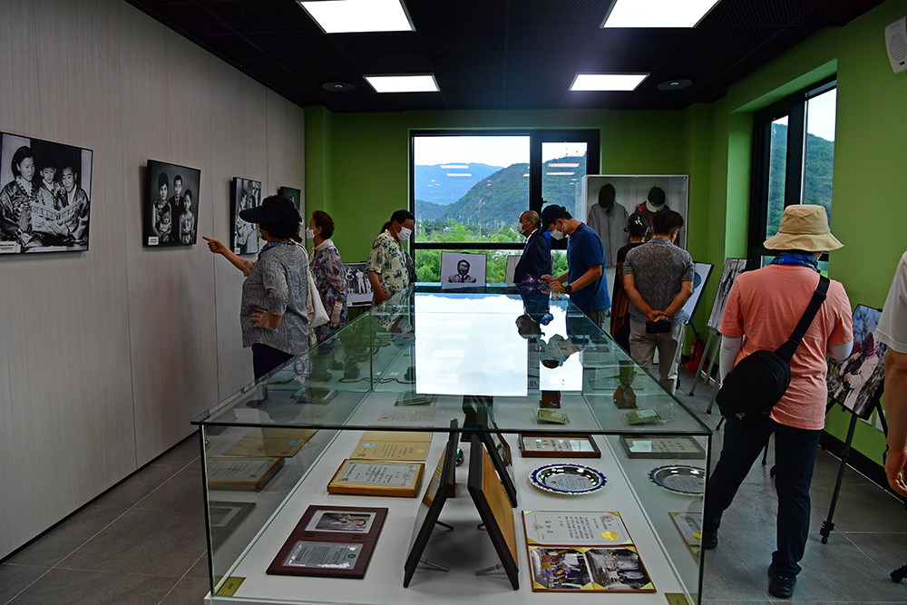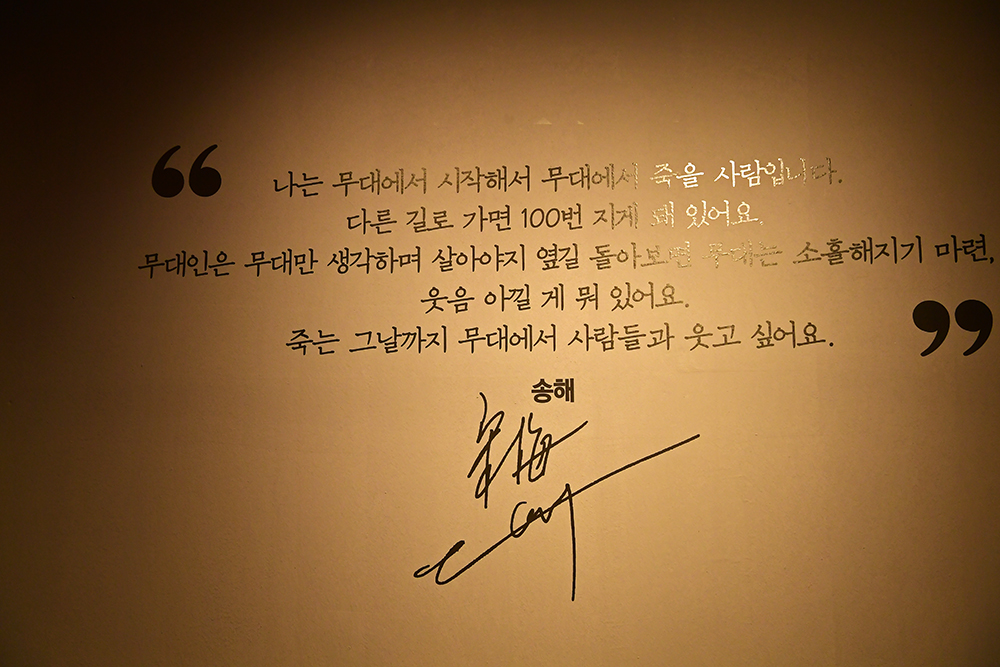 기념관 1층으로 들어섰습니다. 이곳에는 특산품 판매점과 사무실 그리고 송해 선생의 가족사 가 전시되어 있는 ‘박장대소방’이 있습니다. 입구에서부터 선생의 향기가 짙게 느껴지는데요, 천천히 둘러봤습니다. ㅎ