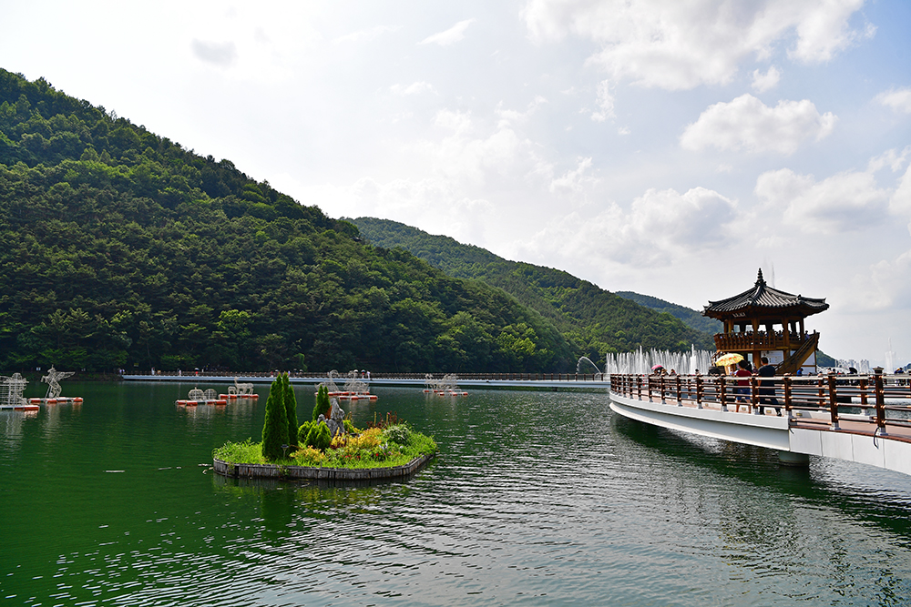 연인 모습을 한 구조물이 재밌습니다. 그곳을 지나 저수지 안으로 들어가면 하트모양의 조명 구조물 있습니다. 이곳에 불빛이 점등되면 참 예쁠 것 같네요~